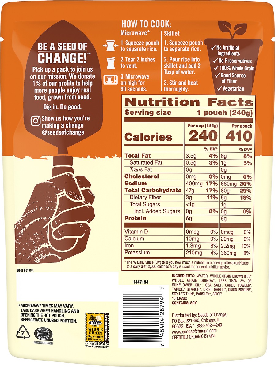 Seeds Of Change Organic Rice Brown & Quinoa With Garlic - 8.5 Oz