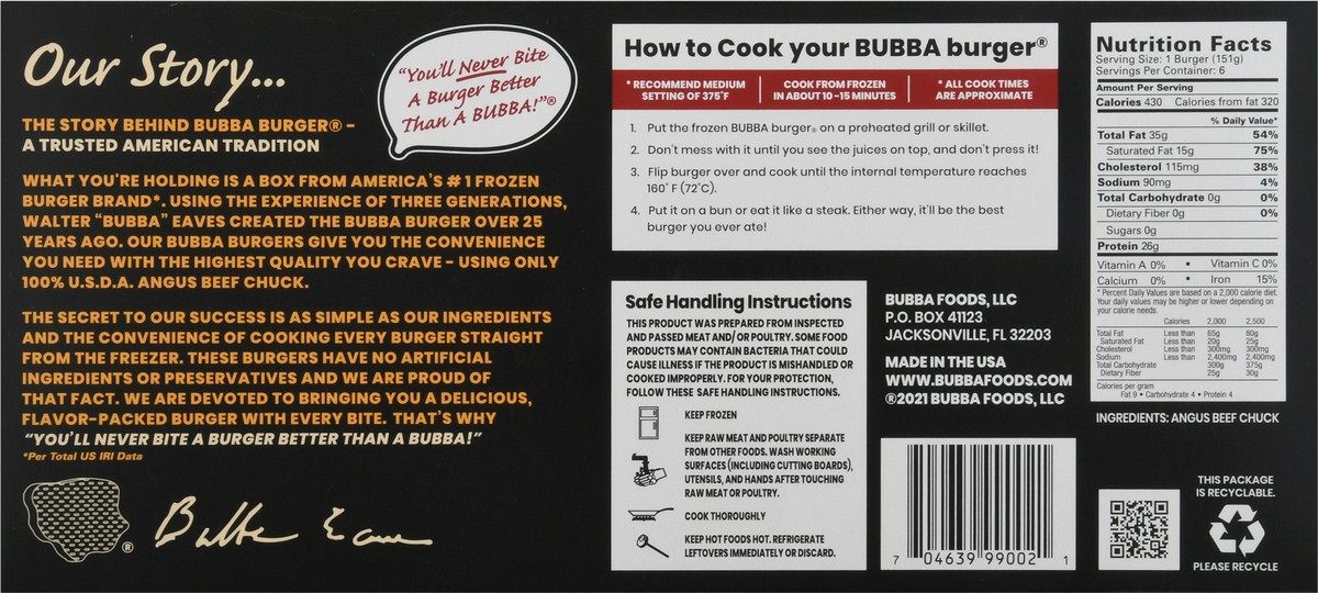 Gluten-free. Made from 100% Angus beef chuck. The beginning of the Bubba Burger: after three generations in the beef business. Walter Bubba eaves brings a great-tasting, easy-to-prepare burger to the …