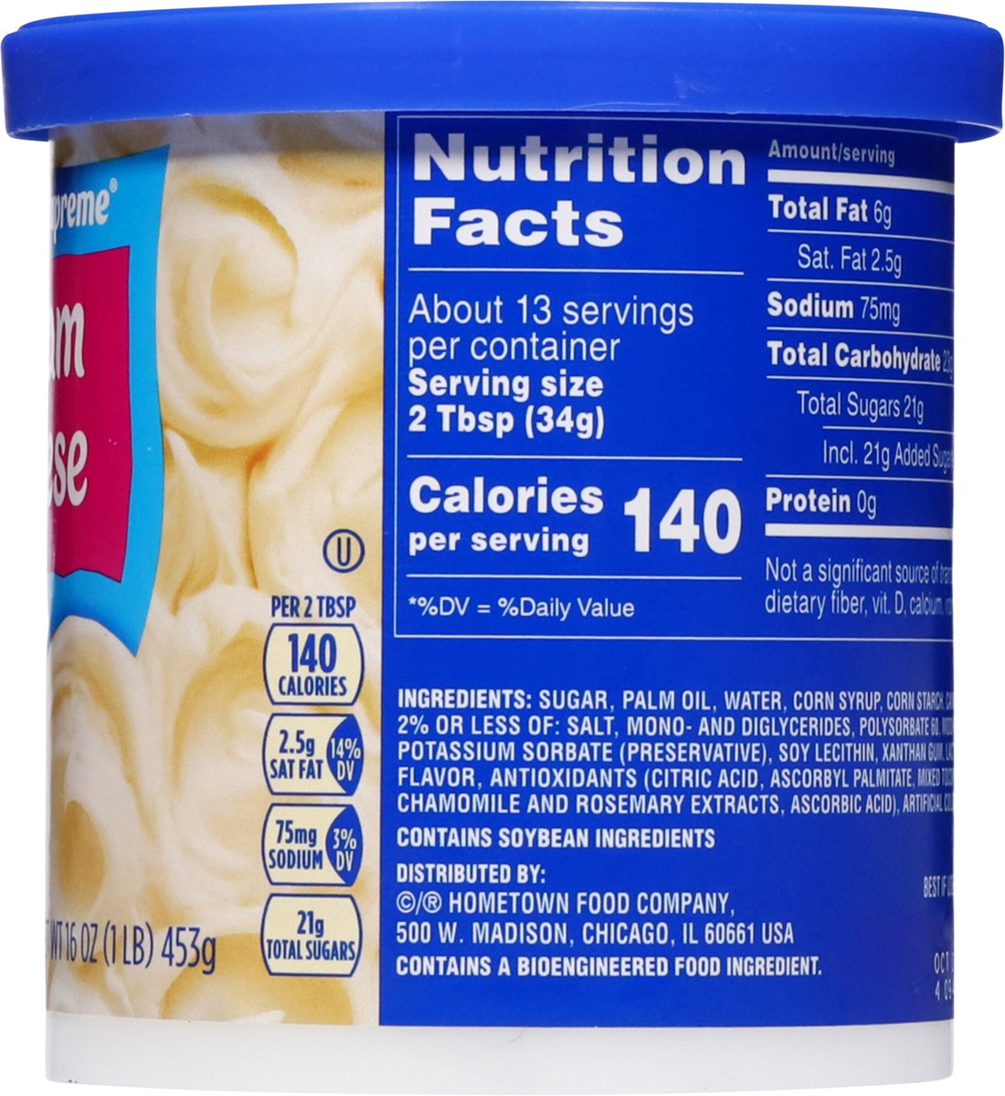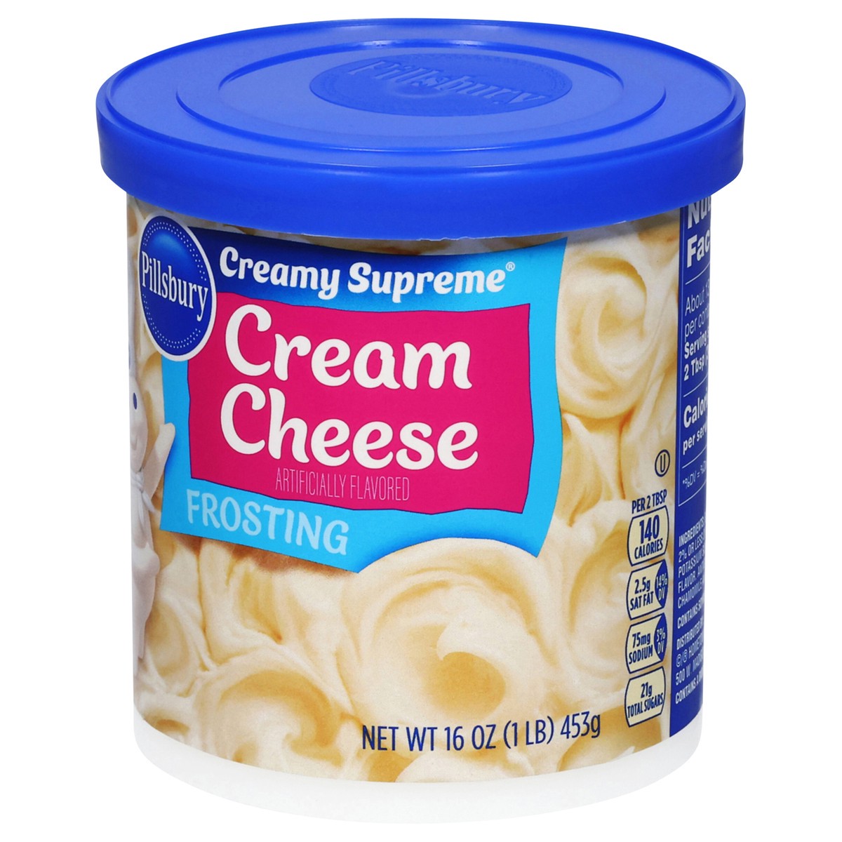 Take any treat from delicious to delightful with Pillsbury Creamy Supreme Cream Cheese Frosting. Thick, rich and spreadable, Pillsbury Creamy Supreme Frosting is ideal for cakes, cupcakes, cookies, br…