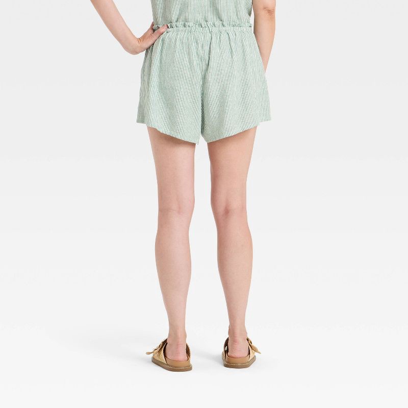 Women's High-Rise Linen Pull-On Shorts - Universal Thread™ Green Striped L