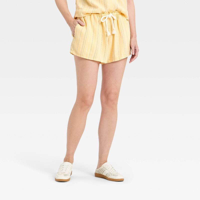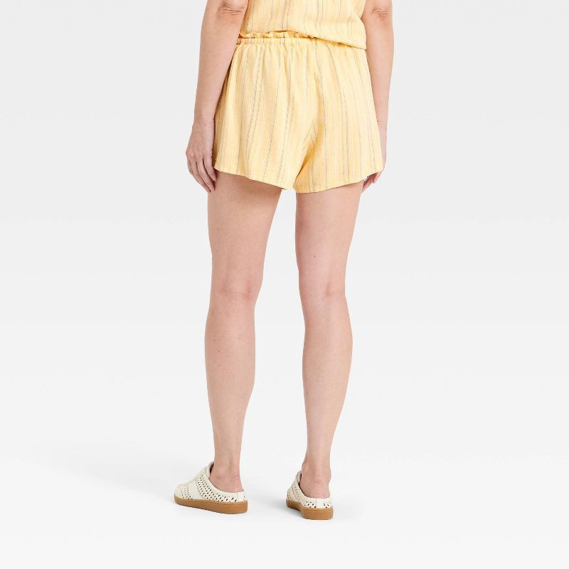 Women's High-Rise Linen Pull-On Shorts - Universal Thread™ Yellow Striped S