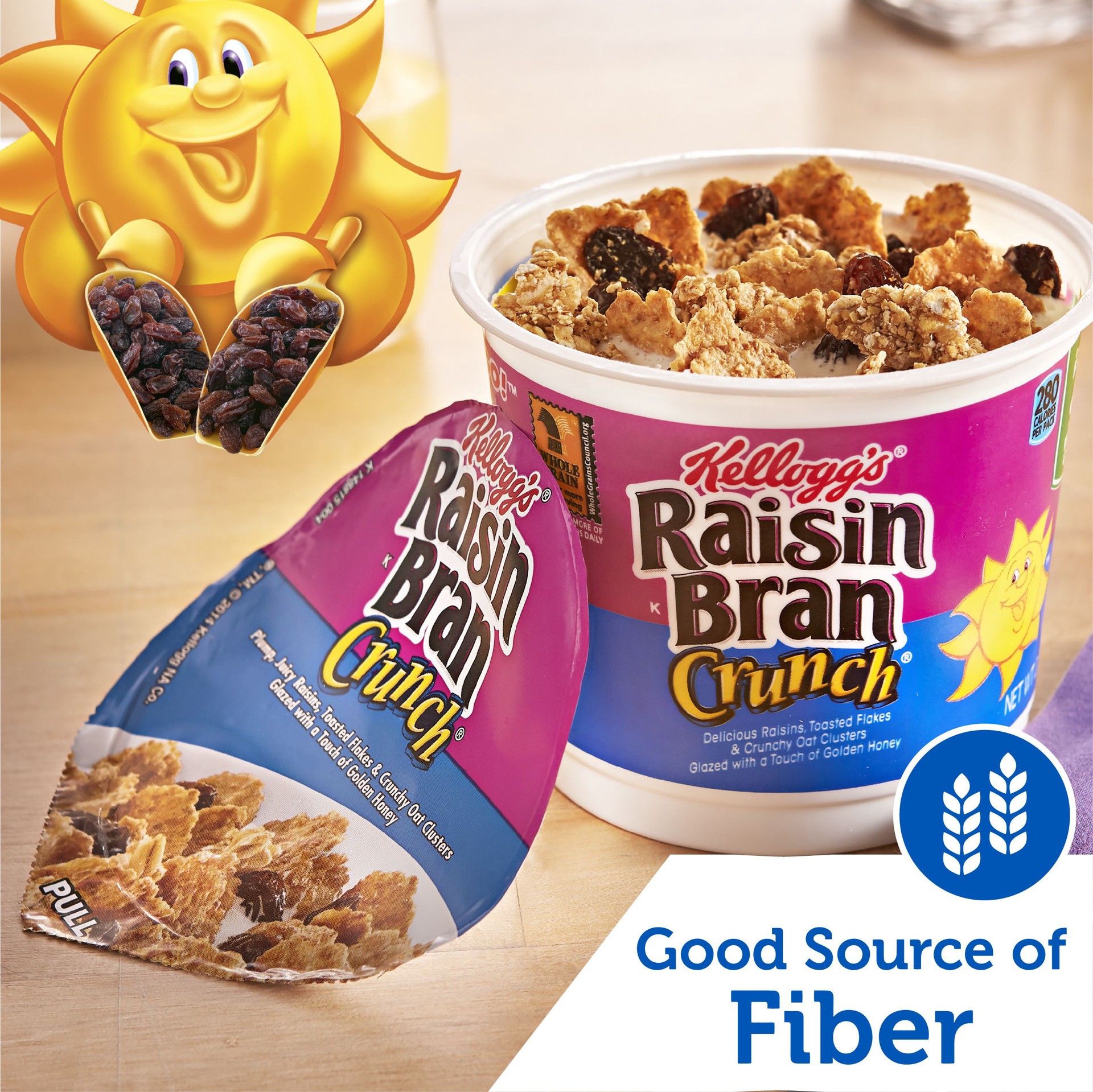 Wake up with Sunny and the goodness of Kellogg's Raisin Bran Crunch, a deliciously crafted, wholesome breakfast cereal that helps energize the start of your day. This satisfyingly crunchy cereal is ma…