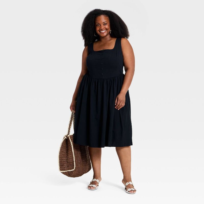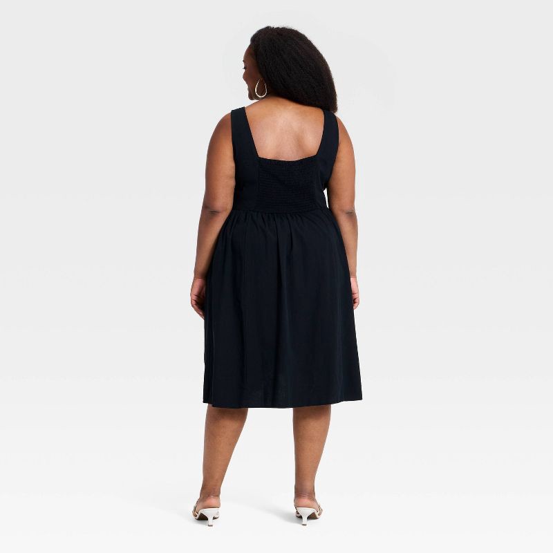 Women's Plus Sleeveless Button-Front Midi A-Line Dress - Ava & Viv™ Black 1X
