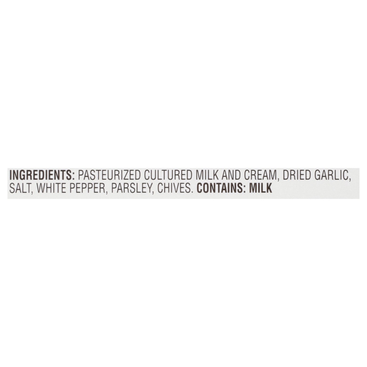 Pasteurized Cultured Milk and Cream, Garlic*, Salt, White Pepper, Parsley, Chives*. *Dried.