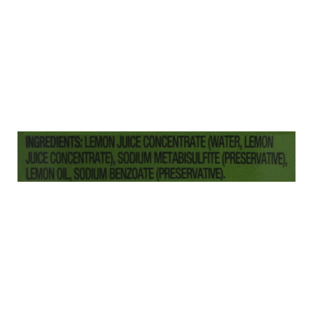 Lemon Juice Concentrate (Water, Lemon Juice Concentrate), Sodium Metabisulfite (Preservative), Lemon Oil, Sodium Benzoate (Preservative).