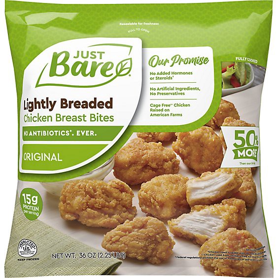 Just Bare Lightly Breaded Chicken Breast Bites 36 Oz - 36 Oz