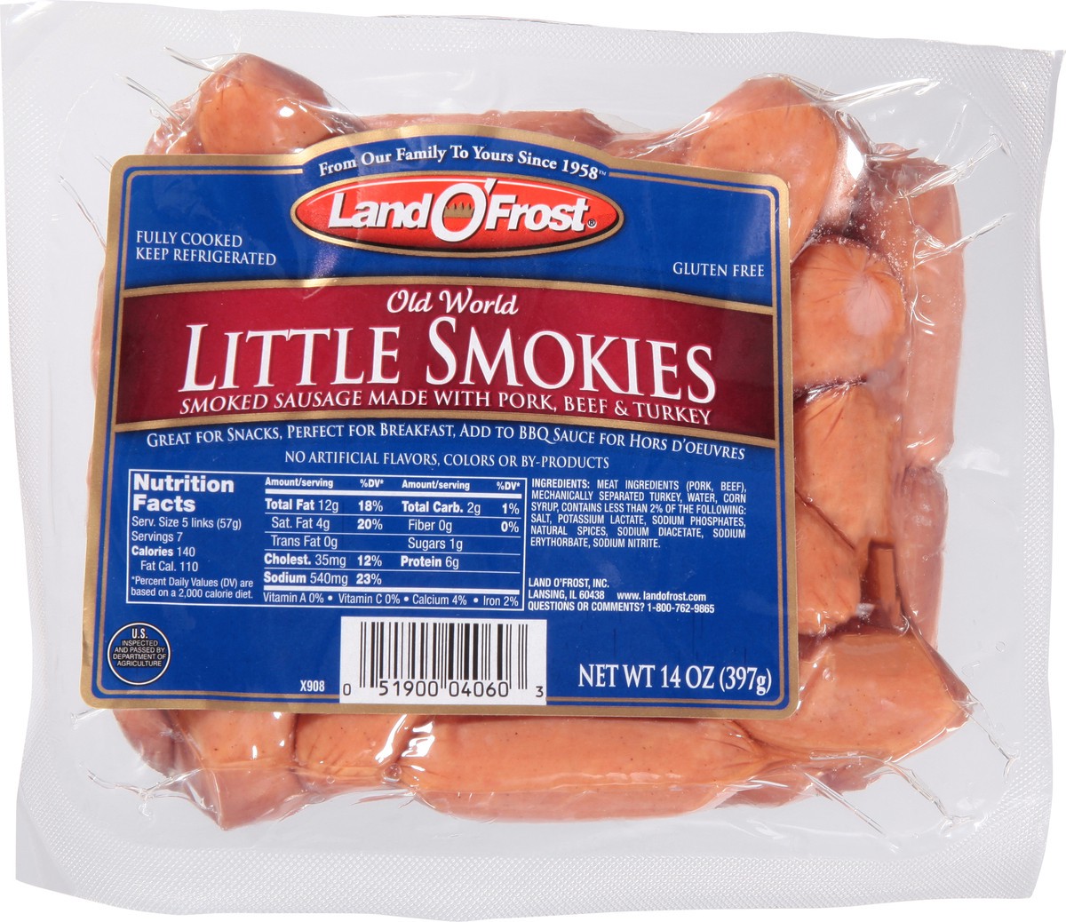 From our family to yours since 1958. Fully cooked. Great for snacks, perfect for breakfast, add to BBQ sauce for hors d'oeuvres. No artificial colors or by-products..