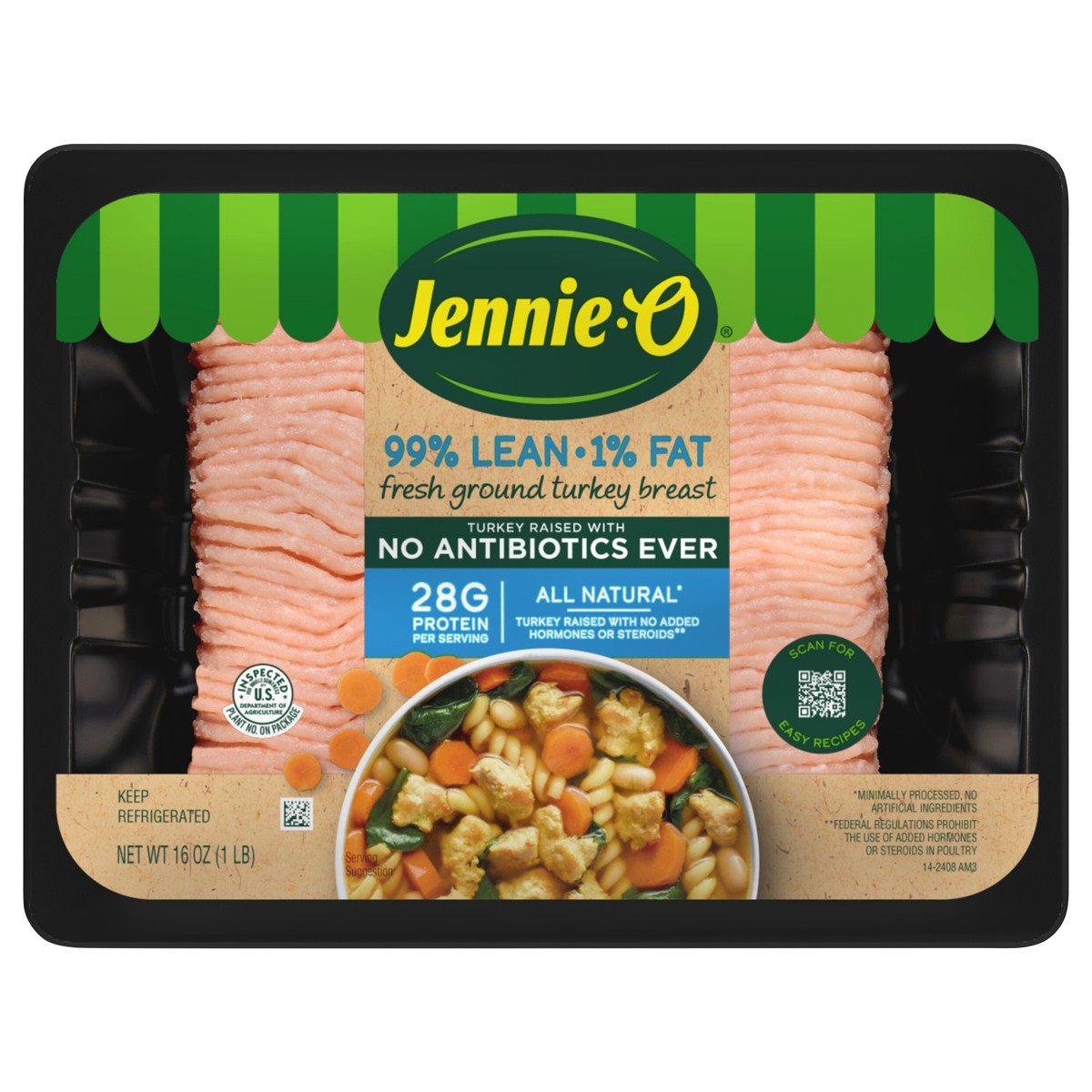 JENNIE-O Fresh All-Natural* 99% Lean Ground Turkey Breast is low in fat and has 28 grams of protein per serving, making it a delicious and nutritious option in all your favorite recipes. Our ground tu…