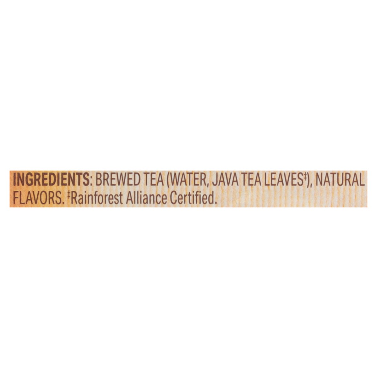 Brewed Tea (Water, Java Tea Leaves(a)), Natural Flavors. (a) Rainforest Alliance Certified, Find Out More at ra.org.