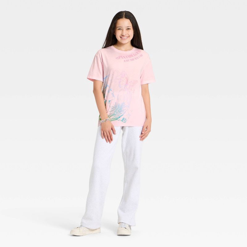 Girls' Wicked Short Sleeve Oversized Front and Back Graphic T-Shirt - Light Pink XL