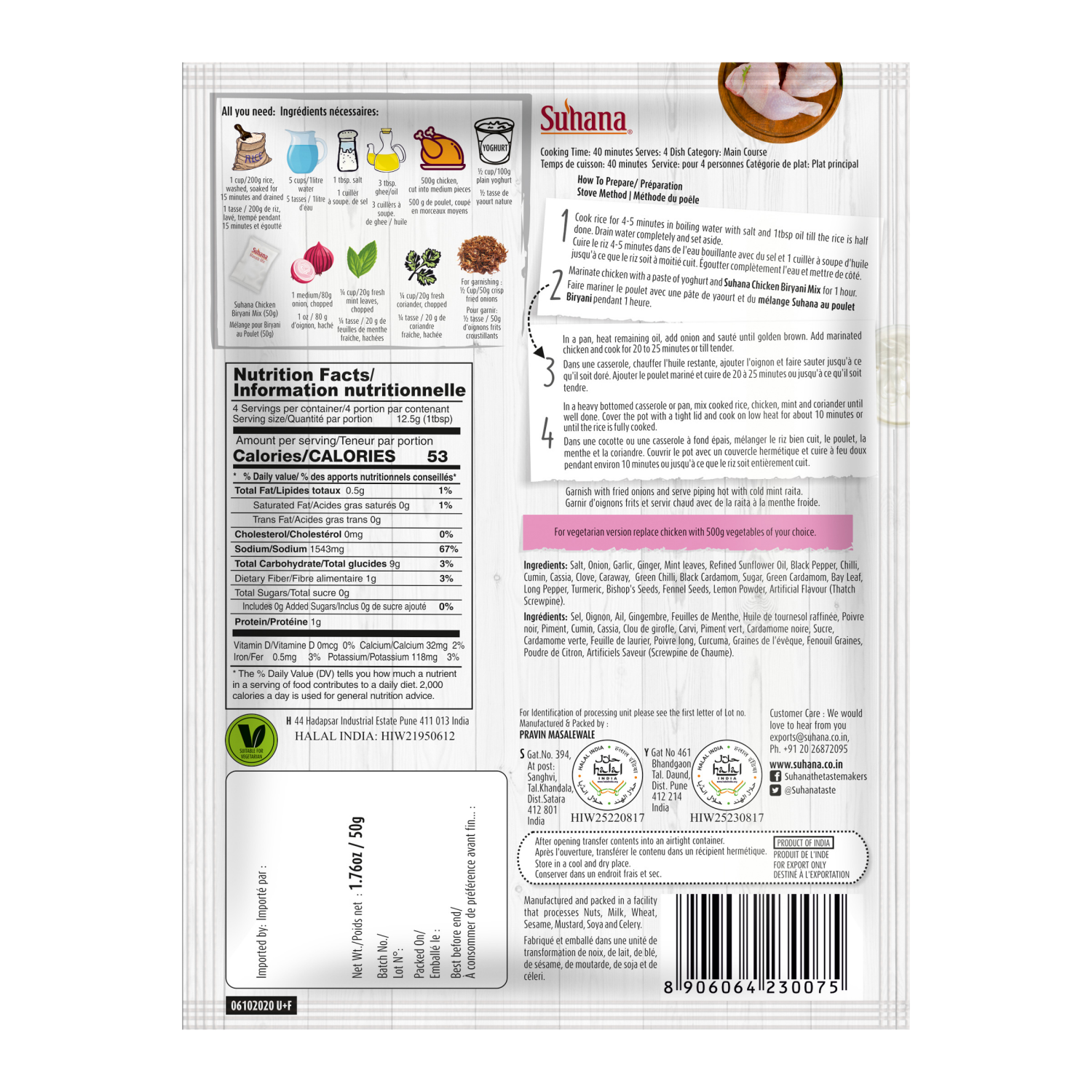 slide 1 of 5, Suhanan Chicken Biryani Mix, 50 gram