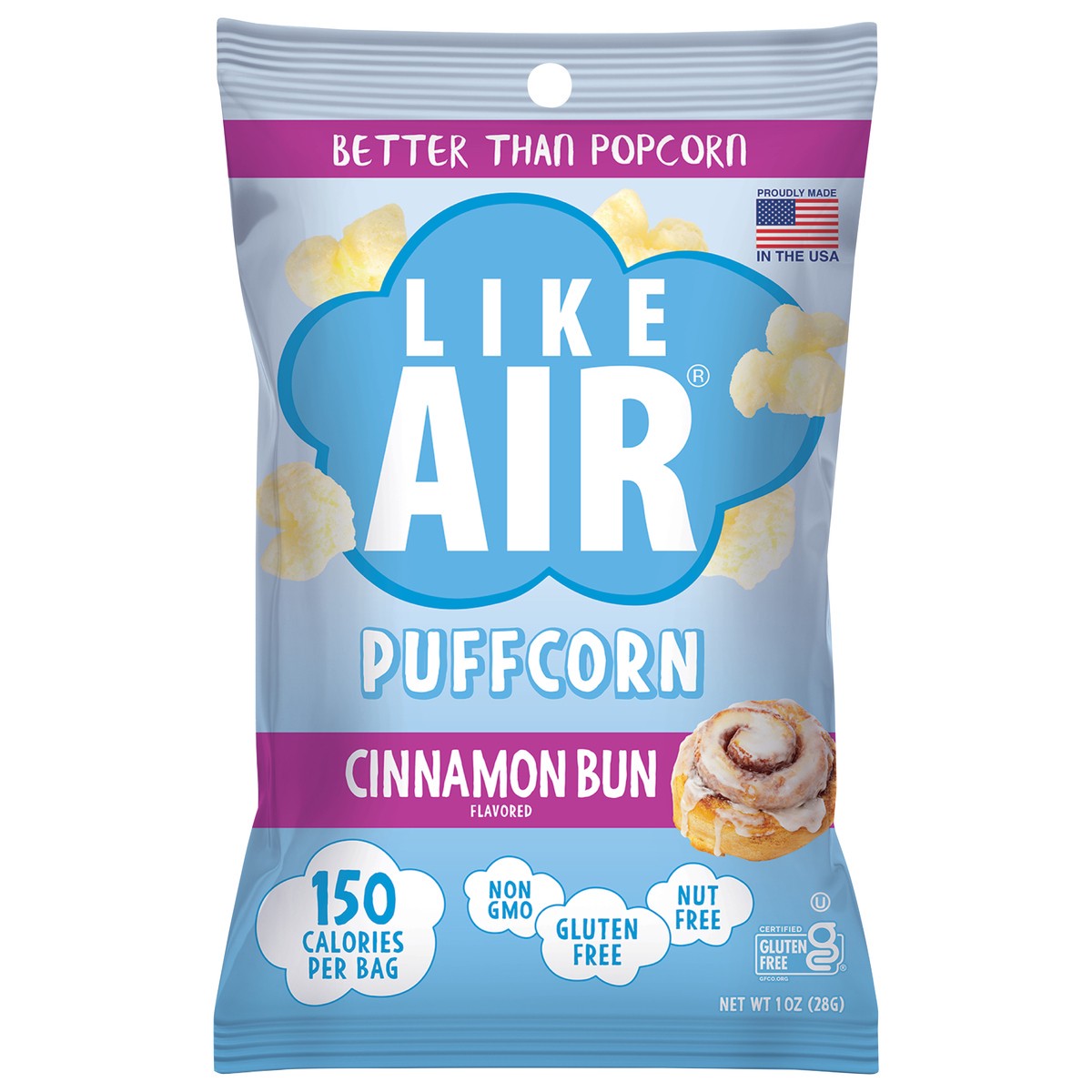 Our Like Air Puffcorn captures that freshly baked flavor of everyone's favorite pastry. You'll taste sweet cinnamon and creamy frosting in this melt-in-your-mouth snack that will leave you reaching fo…