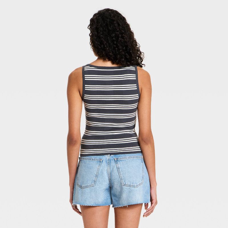 Women's Fitted Tank Top - Universal Thread™ Black Striped S