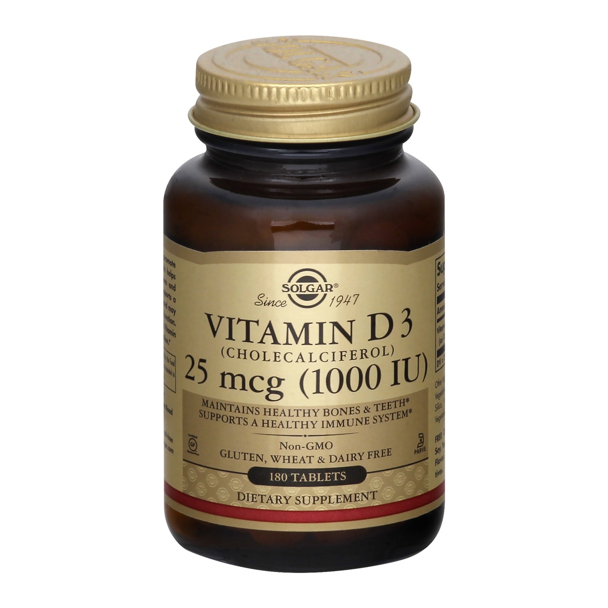 Dietary Supplement. Cholecalciferol. Maintains healthy bones & teeth. Supports a healthy immune system. Since 1947. Solgar's KOF-K certification No. K-1250. Vitamin D is required to promote calcium ab…