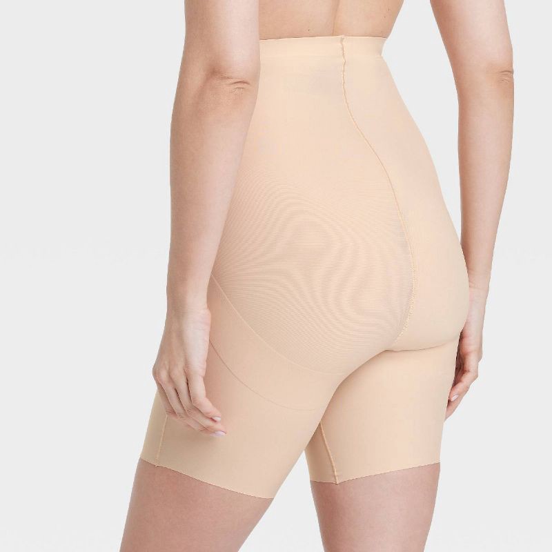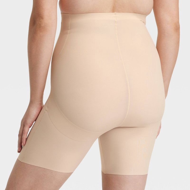 Women's Firm Sculpting High-Waist Shorts - Auden™ Soft Beige M: Nylon Spandex Blend, Pull-On, Elastic Leg Openings, Medium