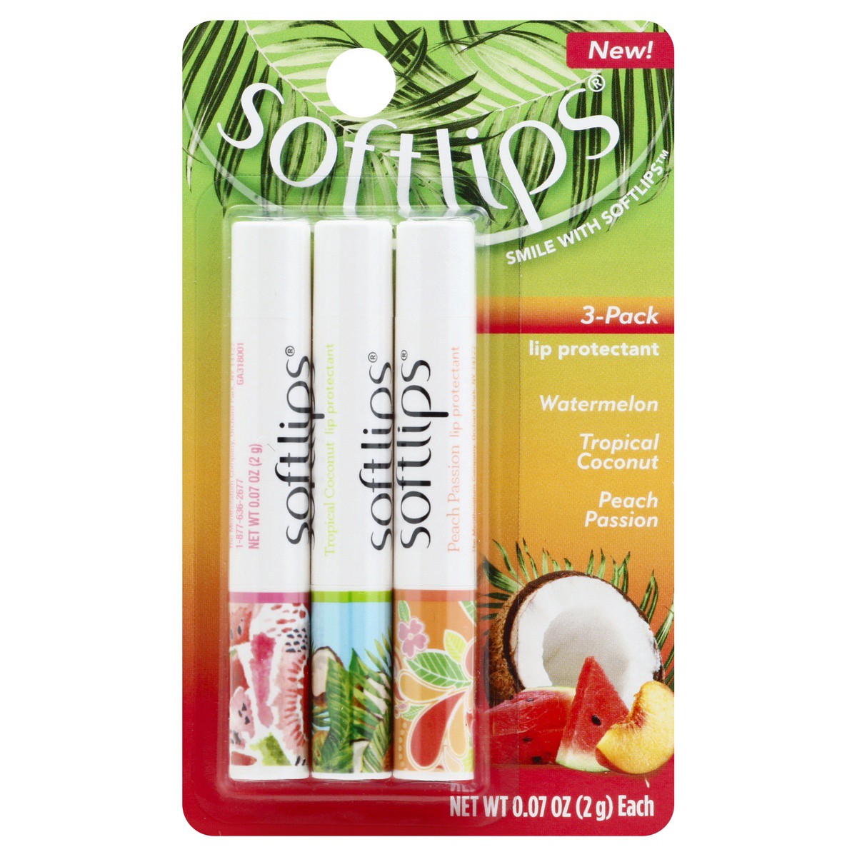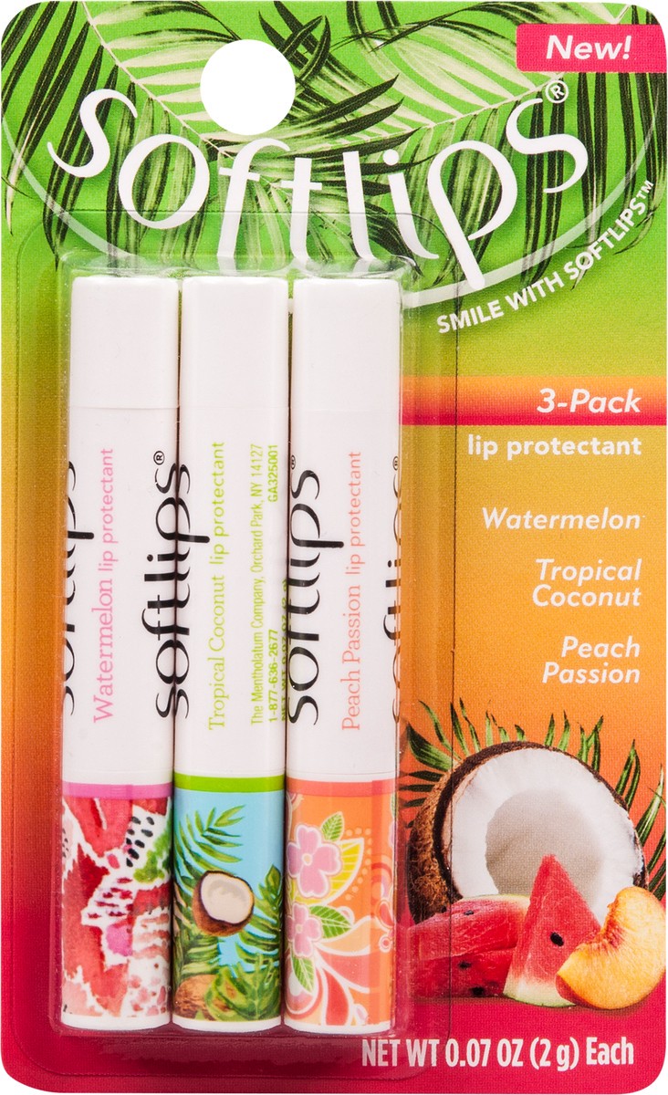 Misc: Watermelon. Tropical coconut. Peach passion. New! Softlips has a lip balm for your every mood and moment. Just glide it on, and it's instant happiness! With lip-nourishing moisturizers and fun f…