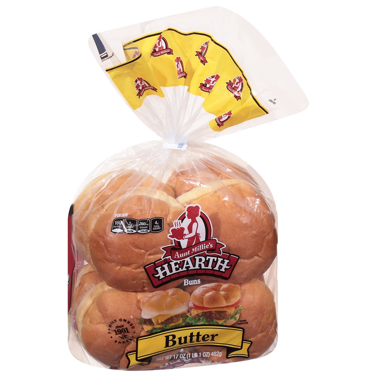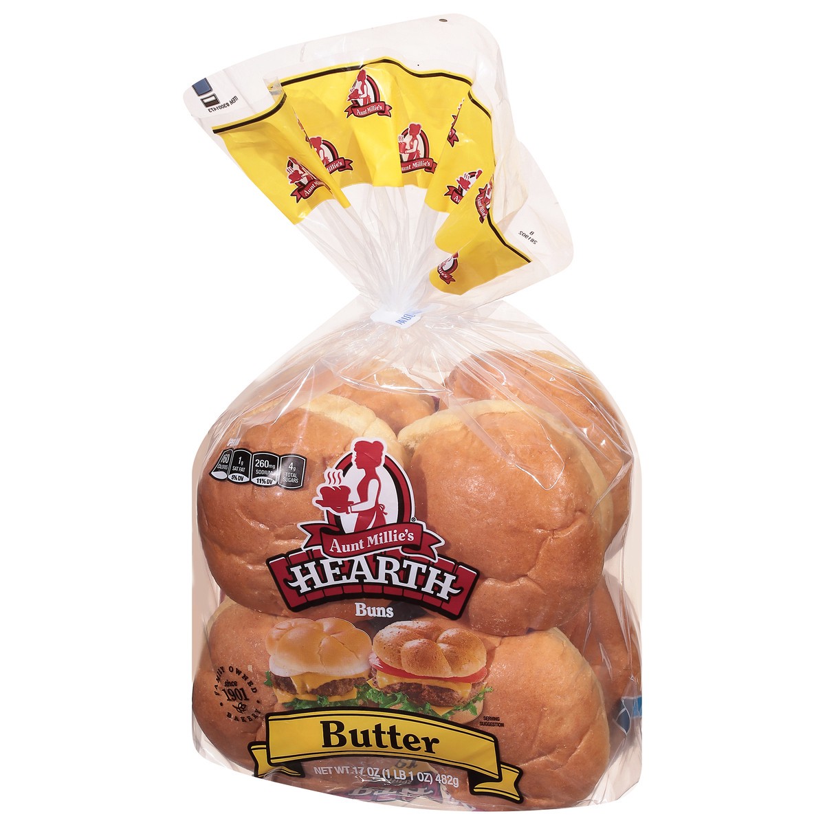 A touch of butter adds a touch of gourmet to these generouslysized, premium hamburger buns. Elevate your grilling experience with the best hamburger buns, by Aunt Millies.