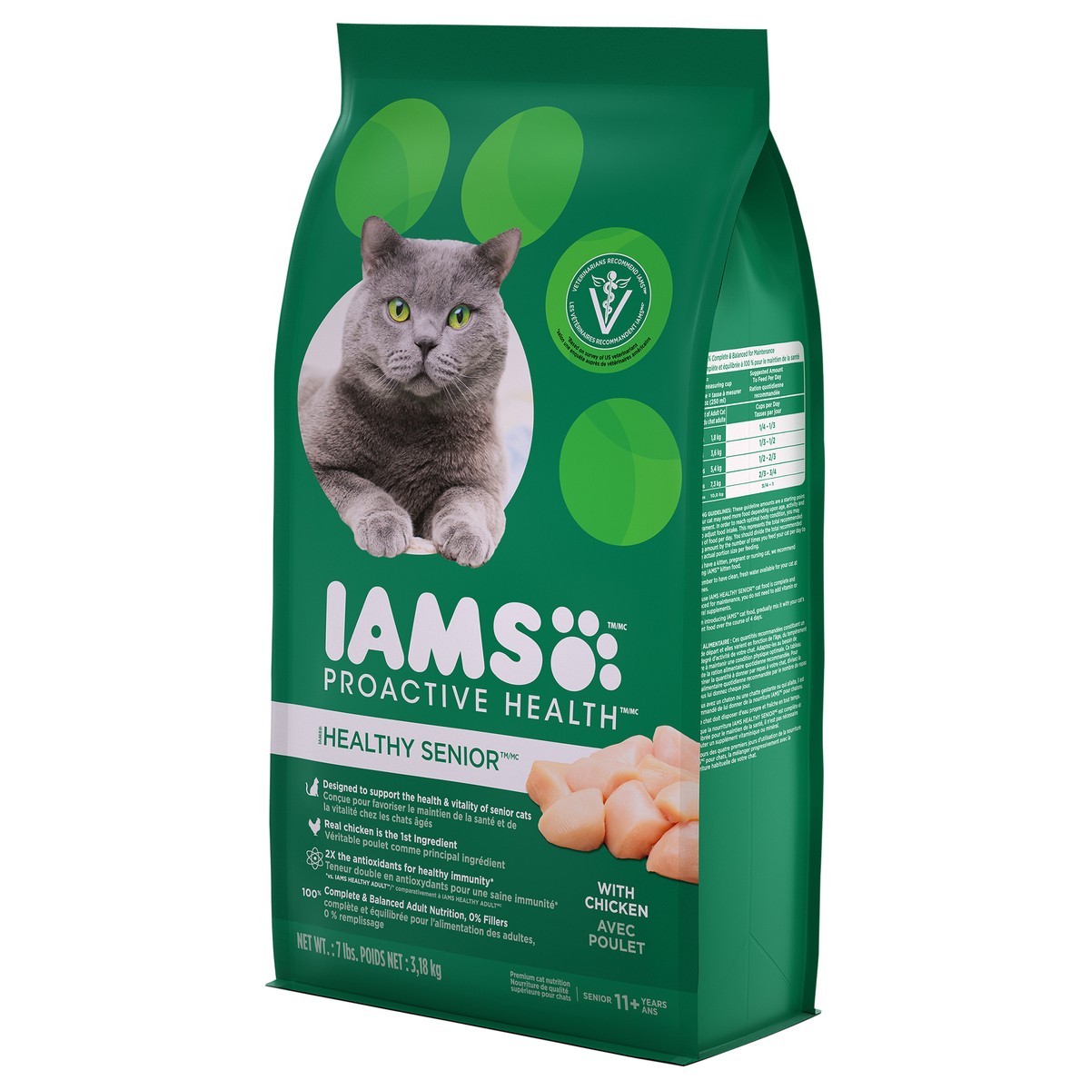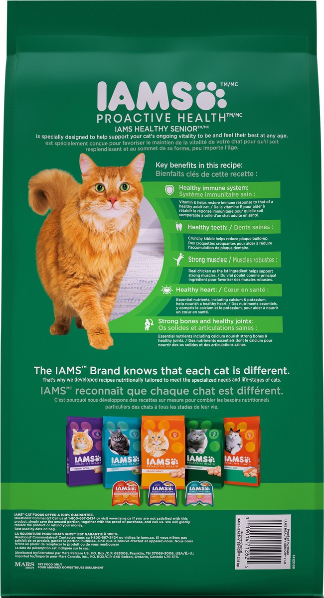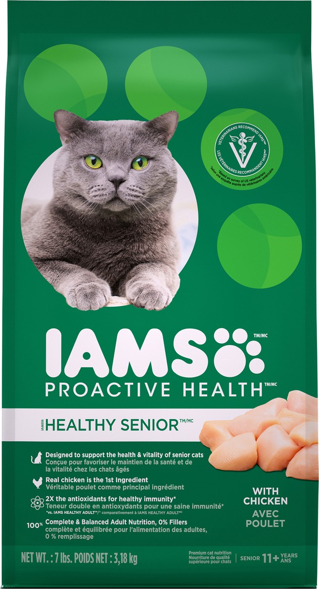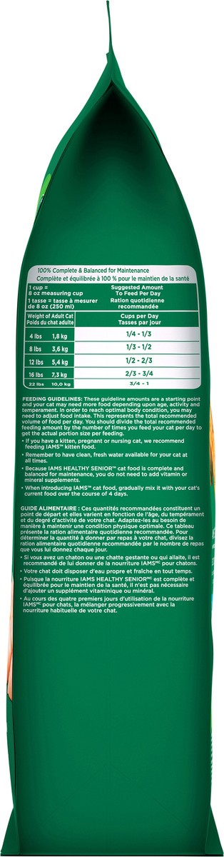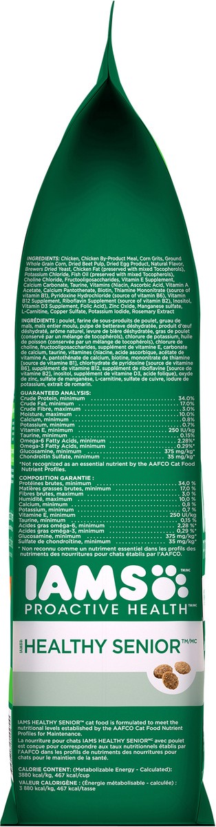 Calorie Content (Metabolized Energy - Calculated): 3880 kcal ME/kg, 467 kcal ME/cup. IAMS Healthy Senior cat food is formulated to meet the nutritional levels established by the AAFCO Cat Food Nutrien…