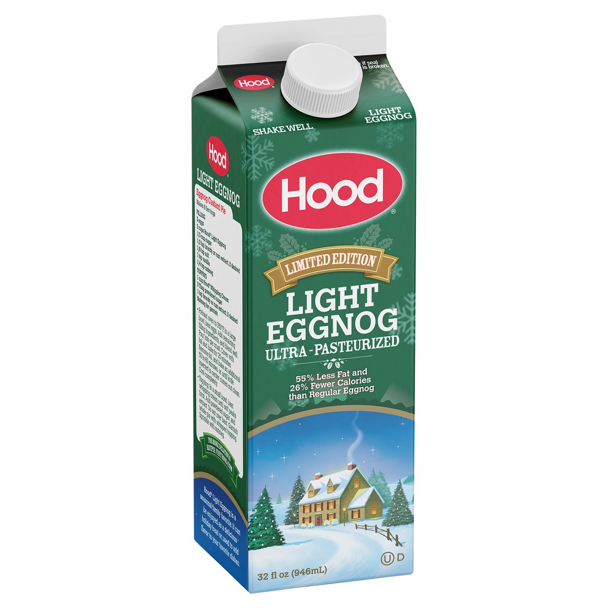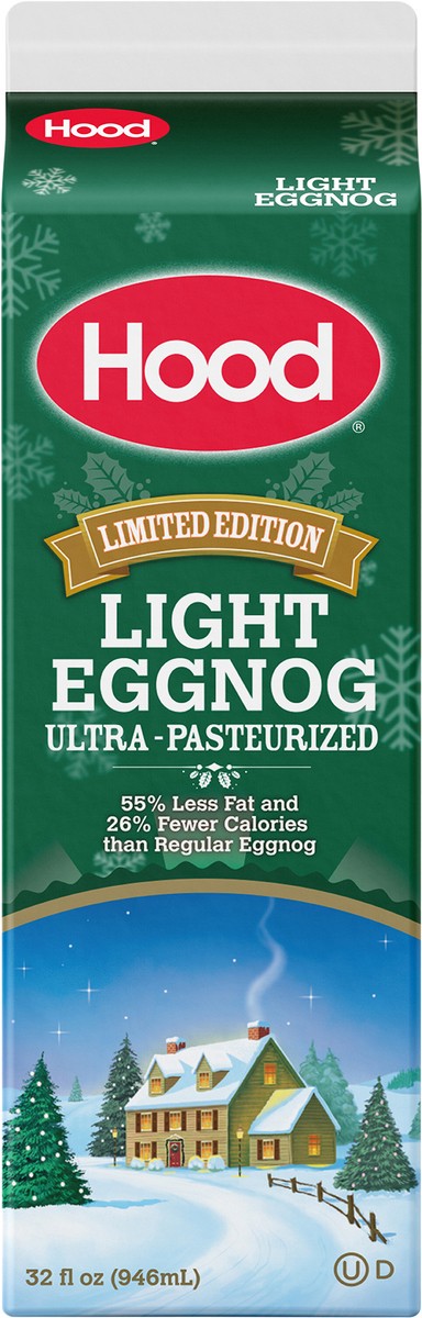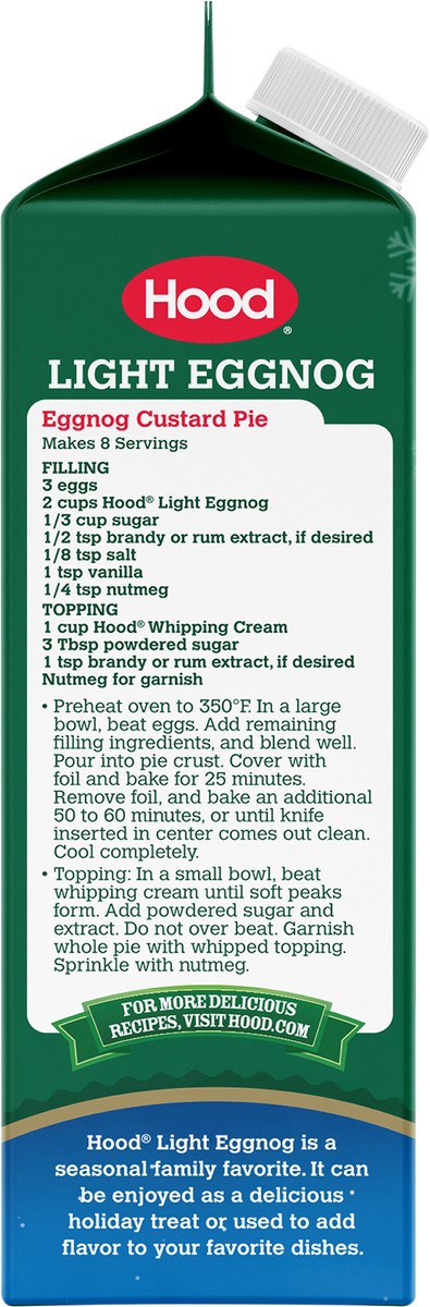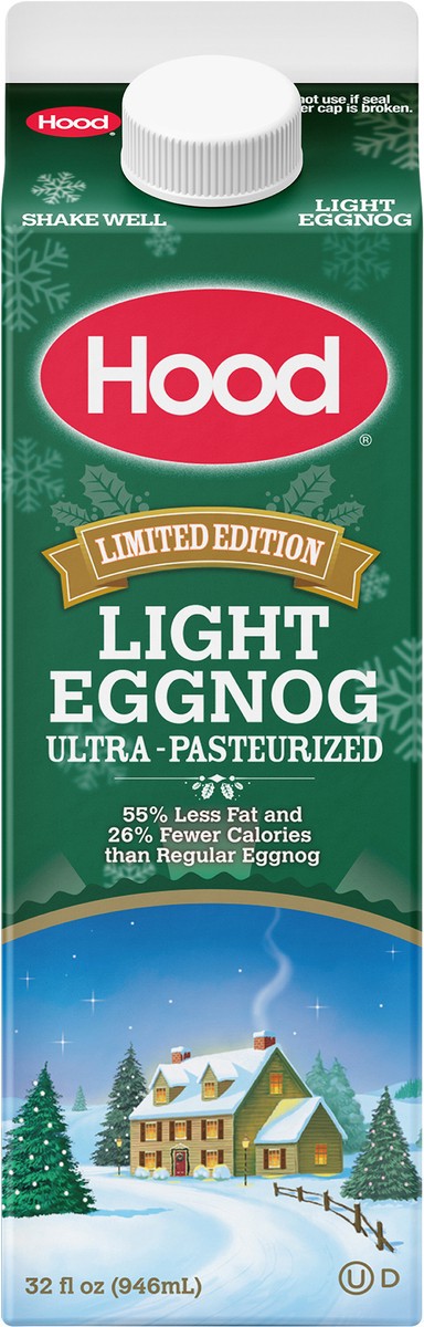 Say hello to Hood Light Eggnog, made with 55% less fat than the leading eggnog. Enjoy Hood Light Eggnog by the glass or use it in your favorite holiday recipes.
