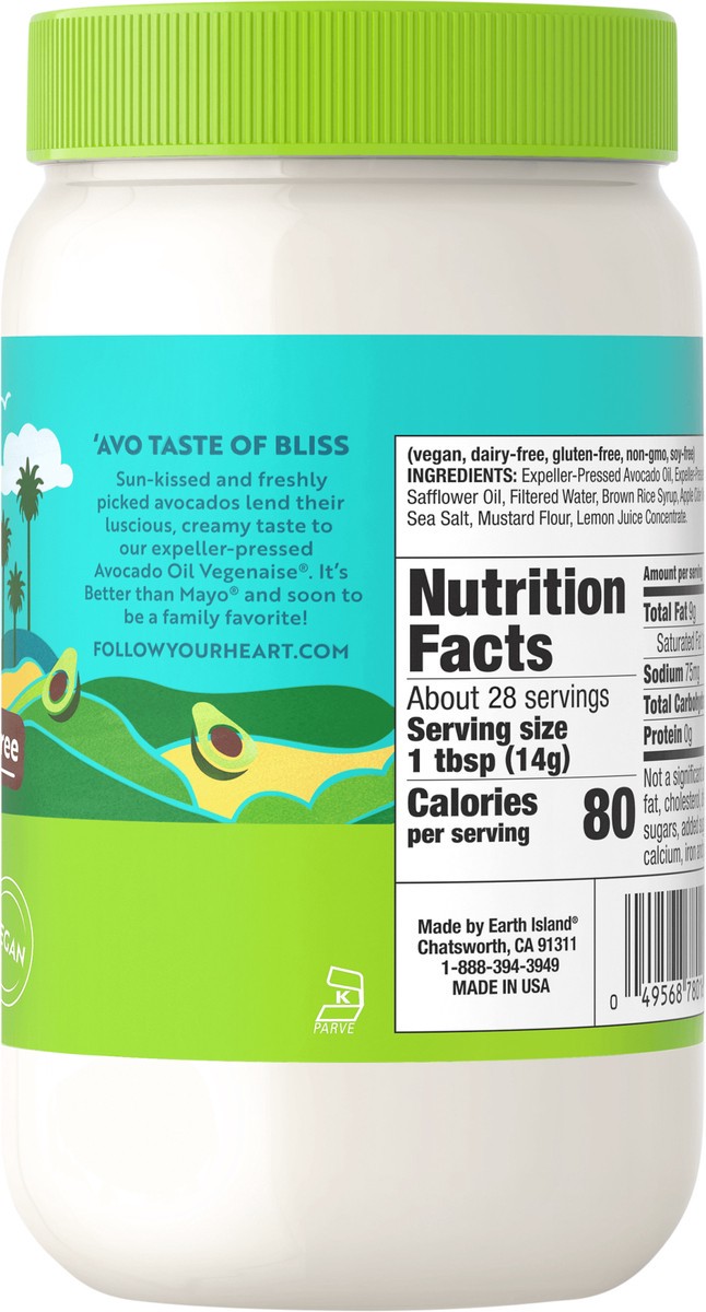 Feed your soul with Follow Your Heart Avocado Oil Vegenaise. Better Than Mayo! It''s like our original egg-free sandwich spread, only made with sun-kissed avocados. With real mayonnaise taste, this se…