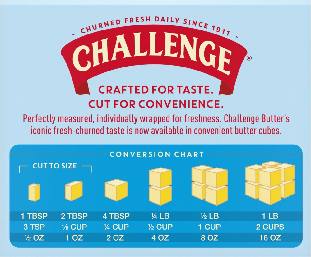Perfectly measured, individually wrapped for freshness. Challenge Butter's iconic fresh-churned taste is now available in convenient butter cubes.