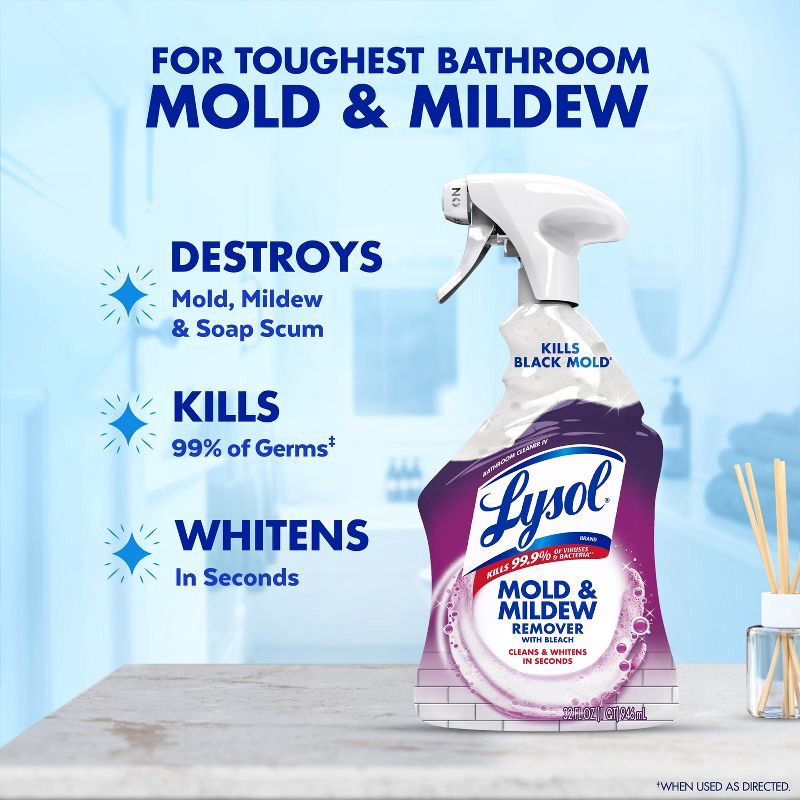 Lysol Mold & Mildew Remover Spray with Bleach is a fast-acting cleaner that targets the source of mold and mildew, removing and helping prevent their regrowth on bathroom surfaces. This powerful disin…