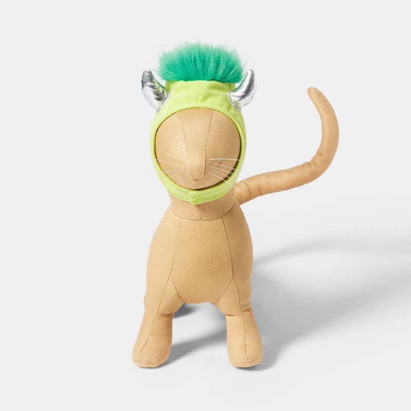 Turn your feline friend into an adorable monster by having them wear the Monster Cat Headwear from Hyde & EEK! Boutique™. This green monster headwear for cats features silver-tone horns and green hair…