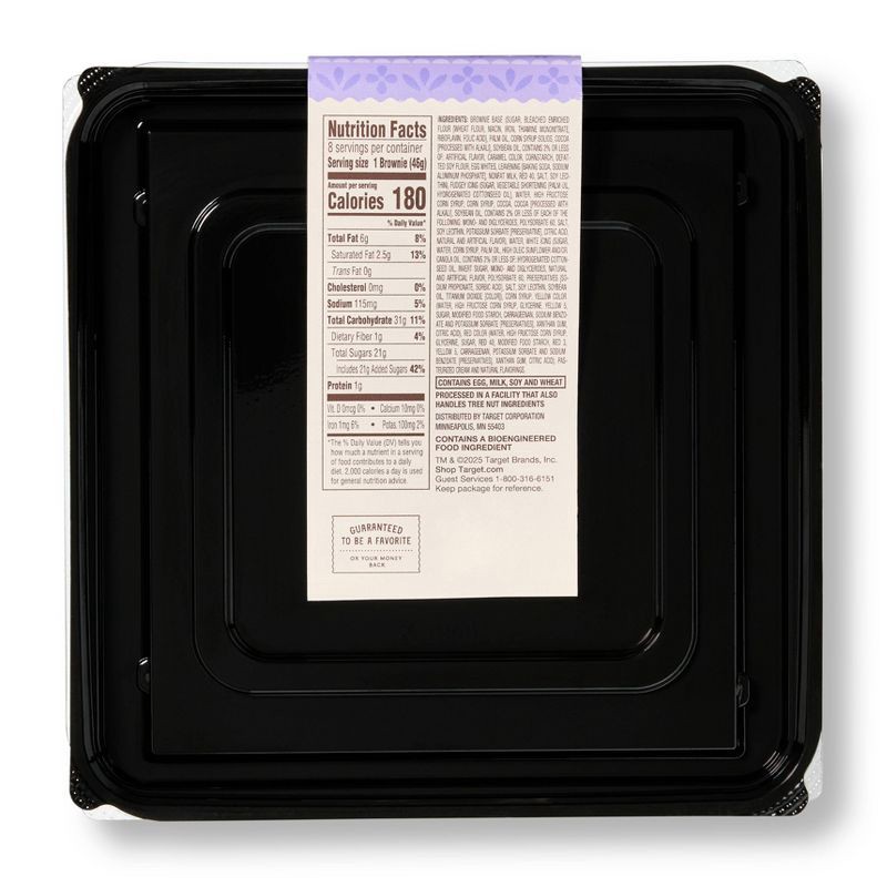 BROWNIE BASE (SUGAR, BLEACHED ENRICHED FLOUR [WHEAT FLOUR, NIACIN, IRON, THIAMINE MONONITRATE, RIBOFLAVIN, FOLIC ACID], PALM OIL, CORN SYRUP SOLIDS, COCOA [PROCESSED WITH ALKALI], SOYBEAN OIL, CONTAIN…