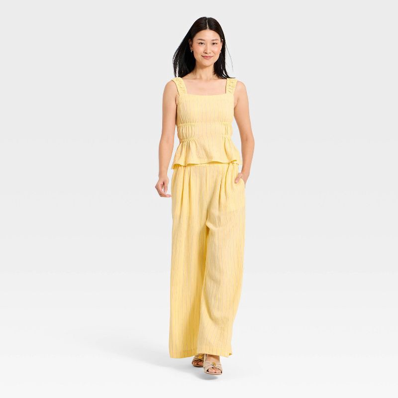 Women's Relaxed Linen Trousers - A New Day™ Yellow M