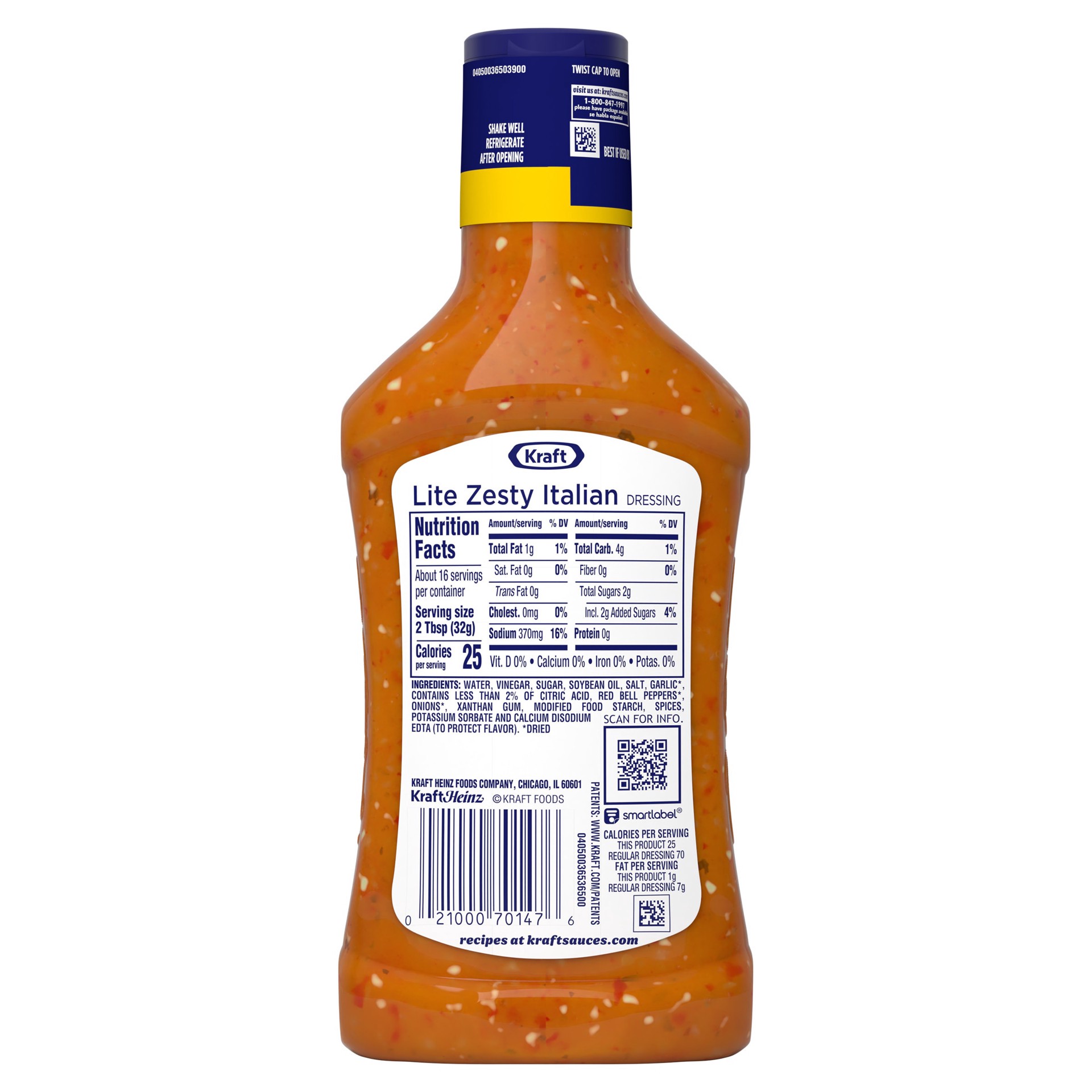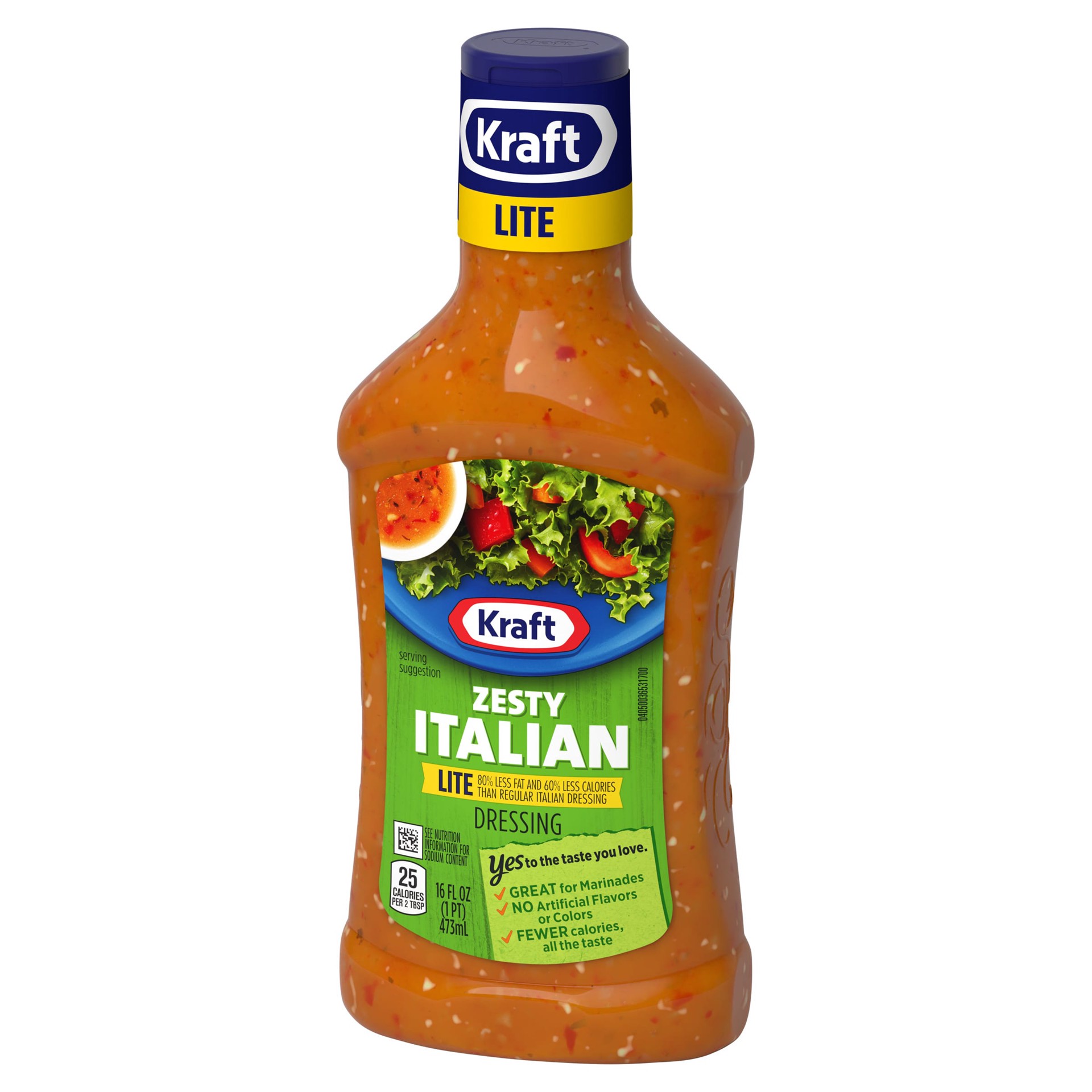 Kraft Zesty Italian Lite Dressing offers the taste you're craving with about one-third of the calories of regular dressing. Our light dressing has 80% less fat than regular Italian dressing, so you ca…