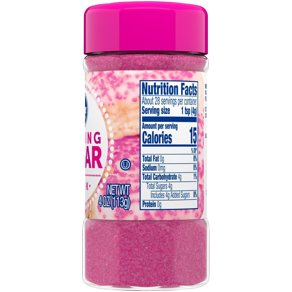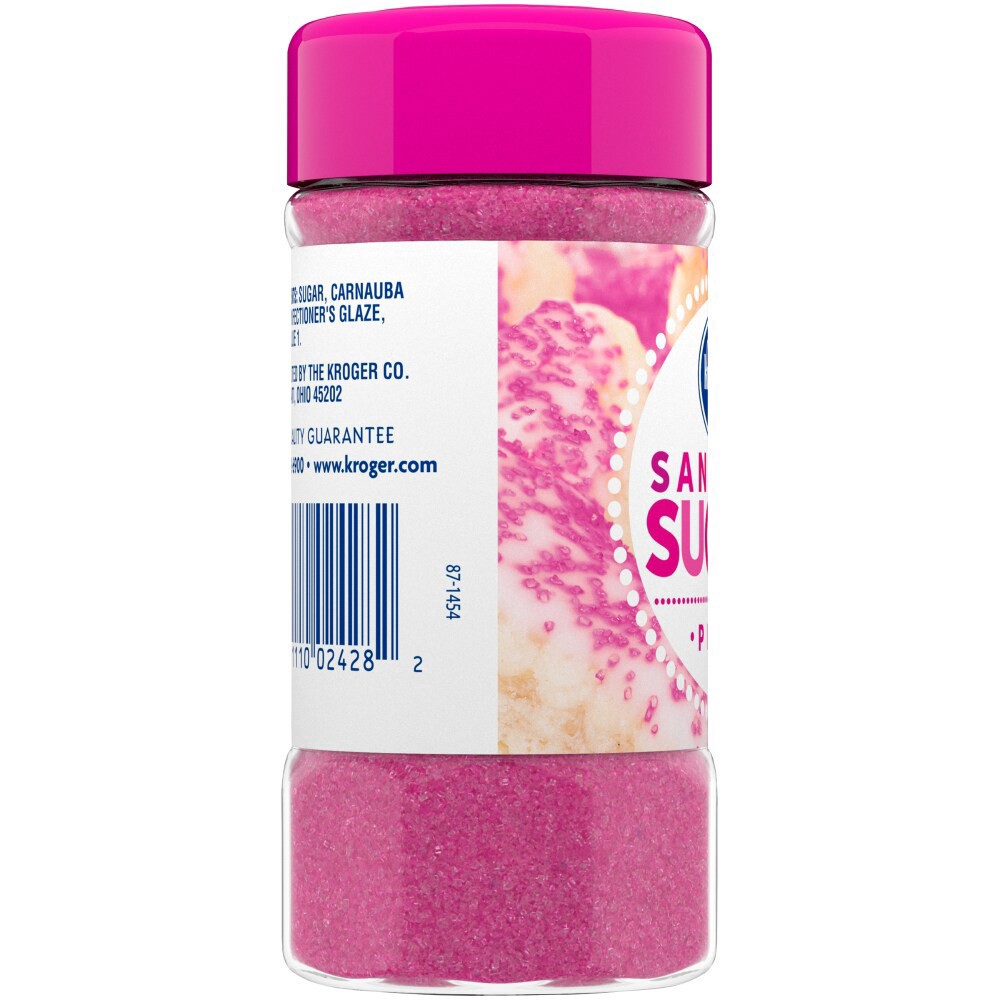 Kroger's Pink Sanding Sugar is an edible decoration for baked goods.Pink Sanding SugarKosher