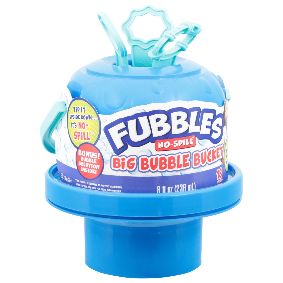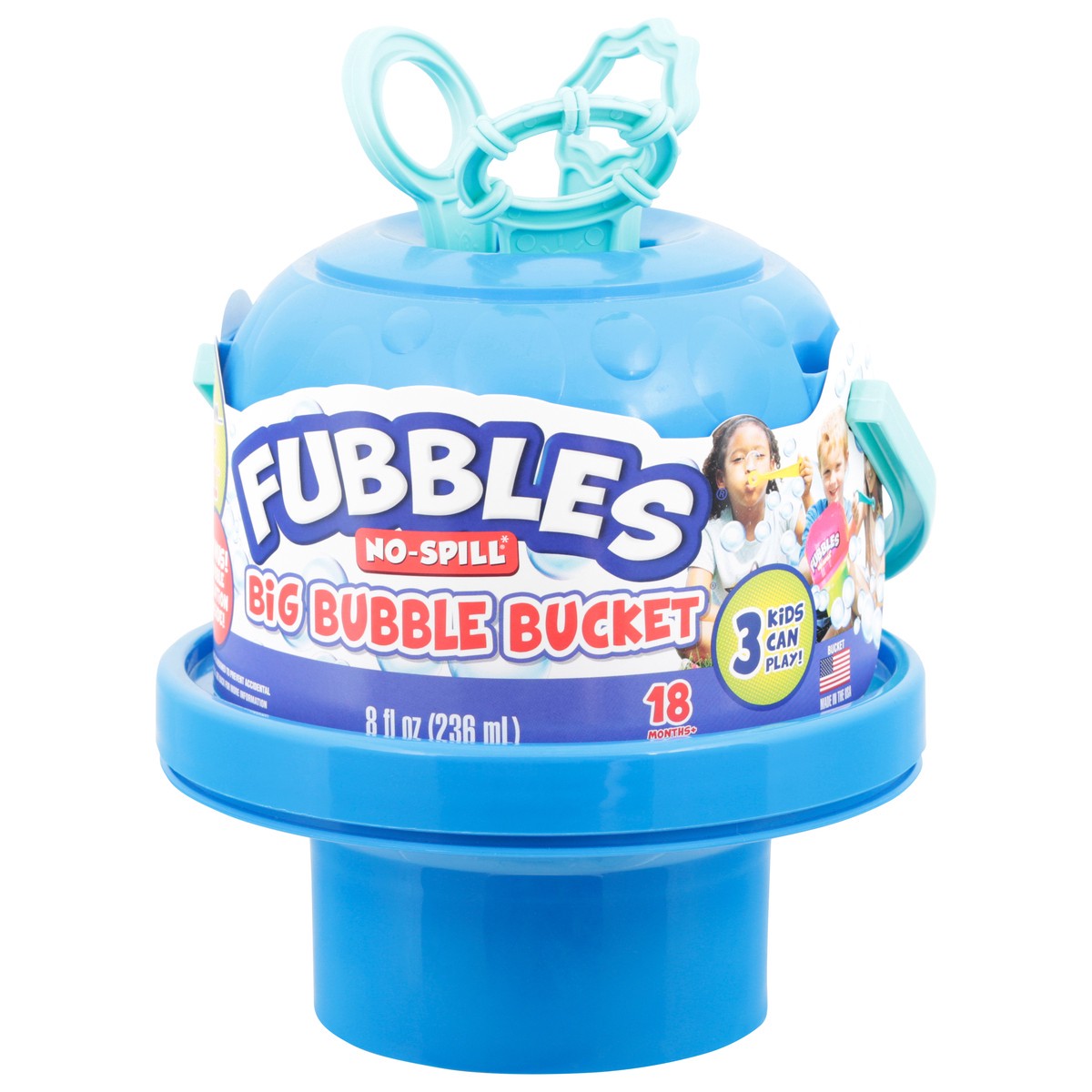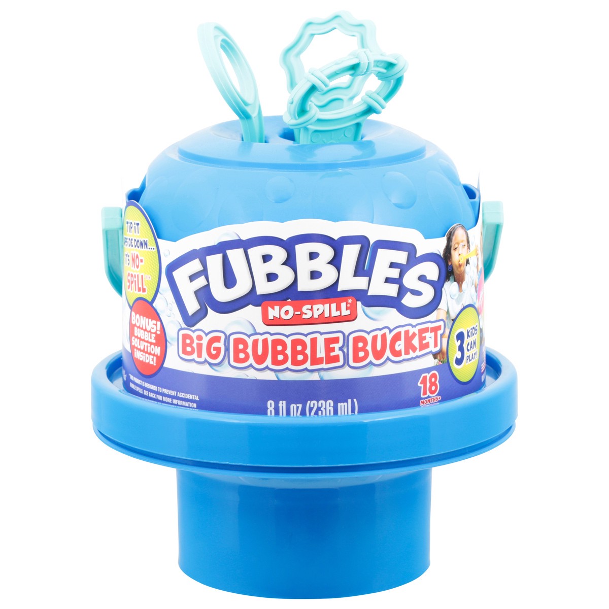 Tip it upside down - it's no-spill (This product designed to prevent accidental bubble spills. See back for more information). Bonus! Bubbles solution inside. 3 kids can play! No spill (This product d…