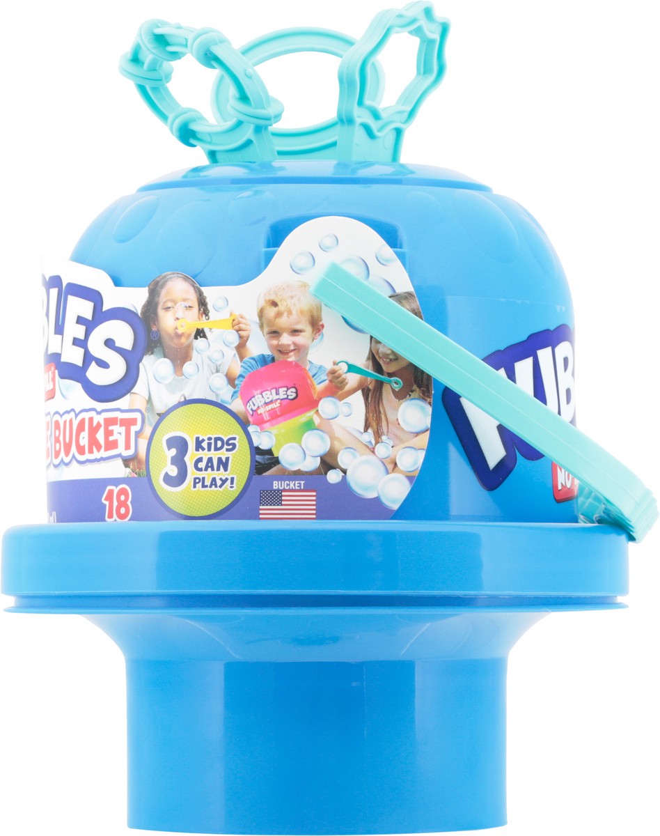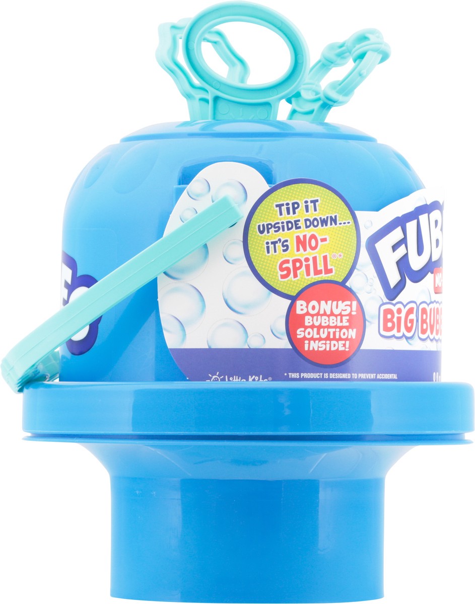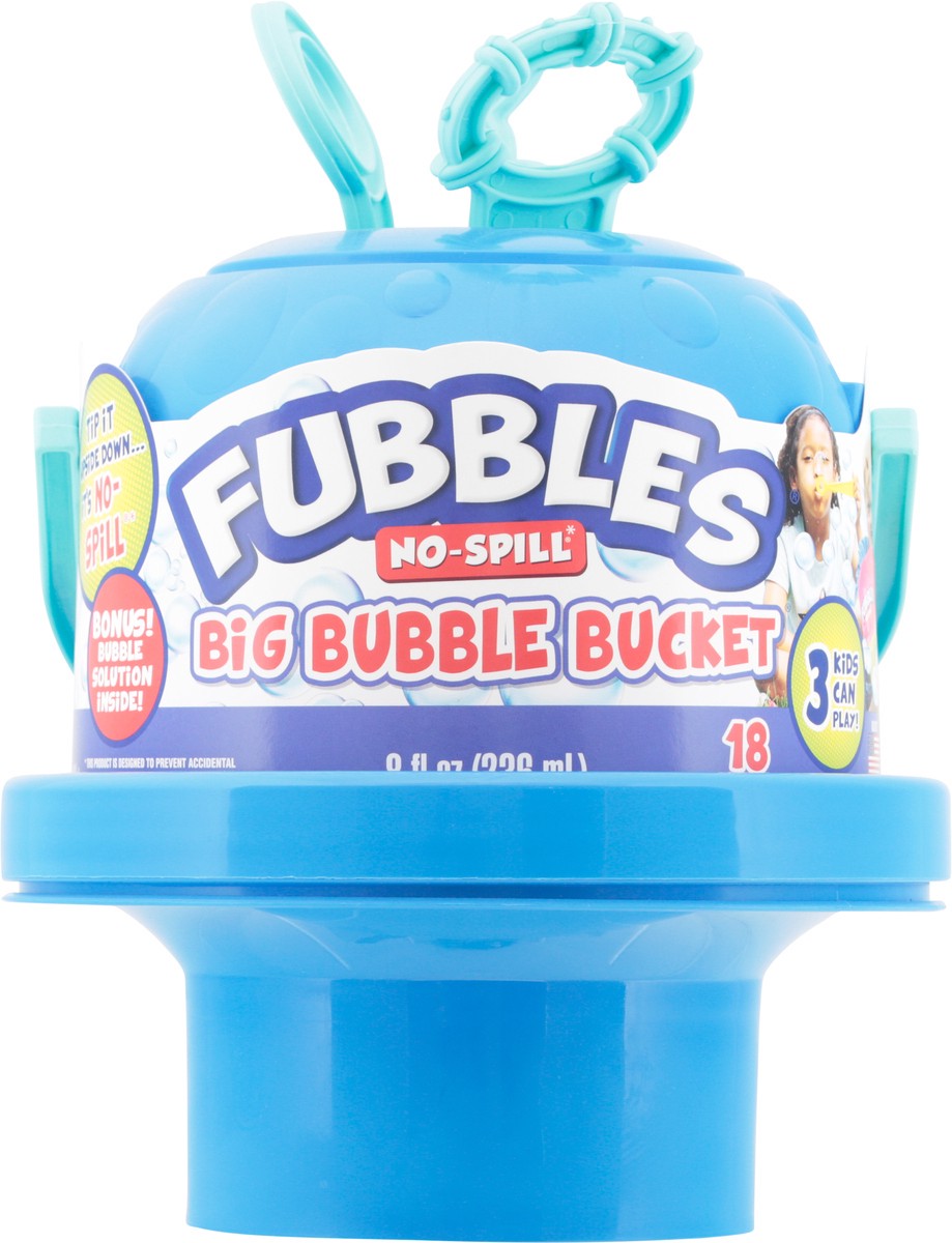 Tip it upside down - it's no-spill (This product designed to prevent accidental bubble spills. See back for more information). Bonus! Bubbles solution inside. 3 kids can play! No spill (This product d…