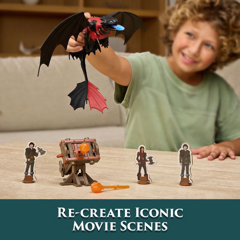 - Attack the Vikings as Toothless with the included projectiles!