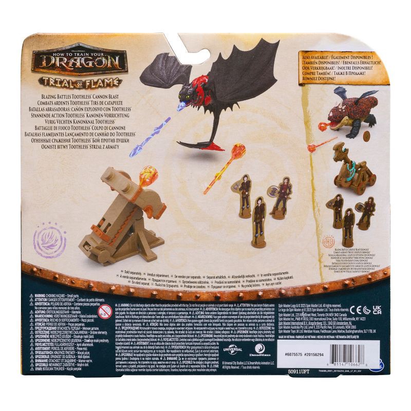Bring the excitement of the Trial of Flame home with the Blazing Battles Toothless Cannon Blast. Let your imagination take the wheel as Toothless shoots projectiles at the cardboard Viking figures! De…