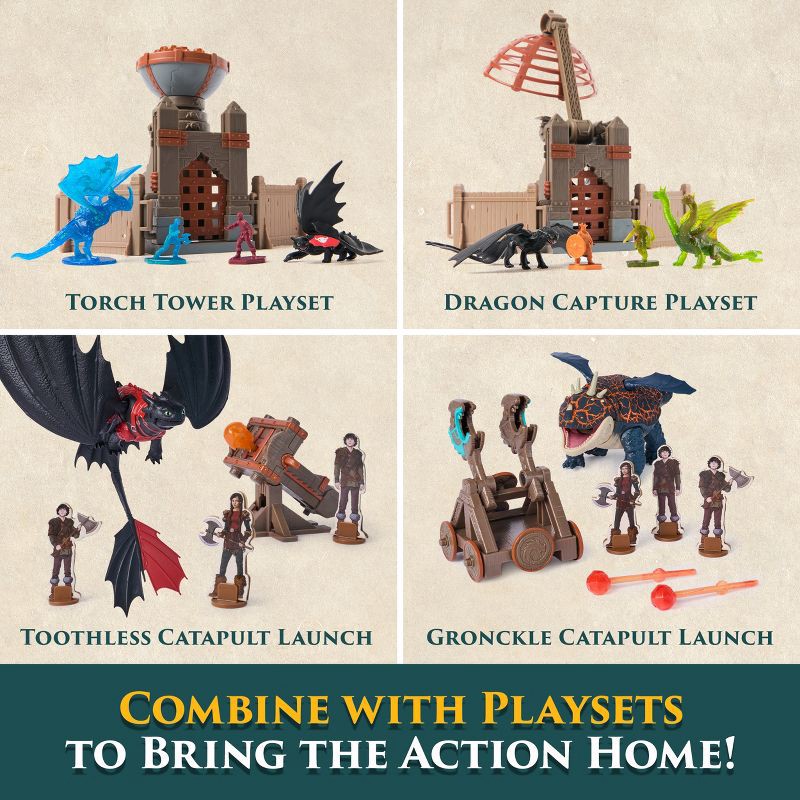 - Attack the Vikings as Toothless with the included projectiles!