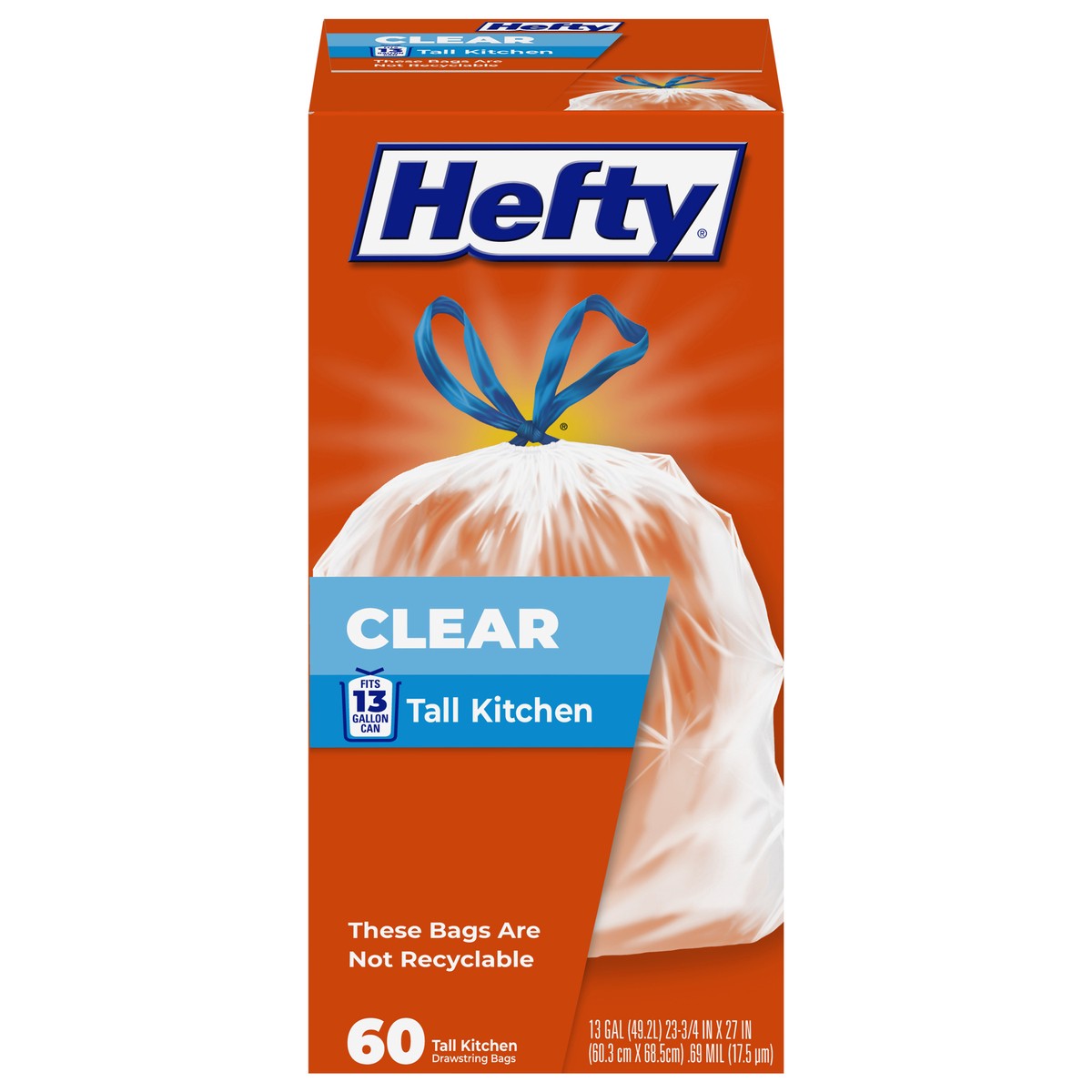 Hefty 13 Gal Recycling Clear Tall Kitchen Drawstring Bags 60 ea