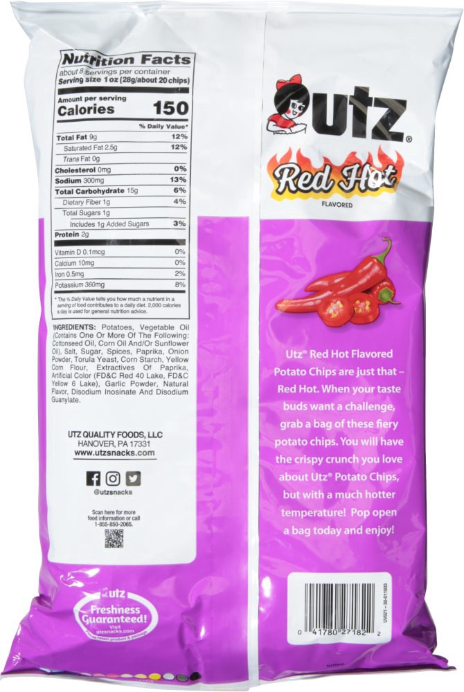 Family crafted flavor, since 1921. Utz Red Hot Flavored Potato Chips are just that - Red Hot. When your taste buds want a challenge, grab a bag of these fiery potato chips. You will have the crispy cr…