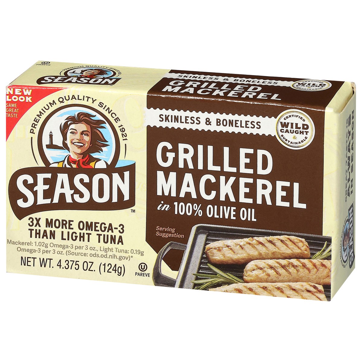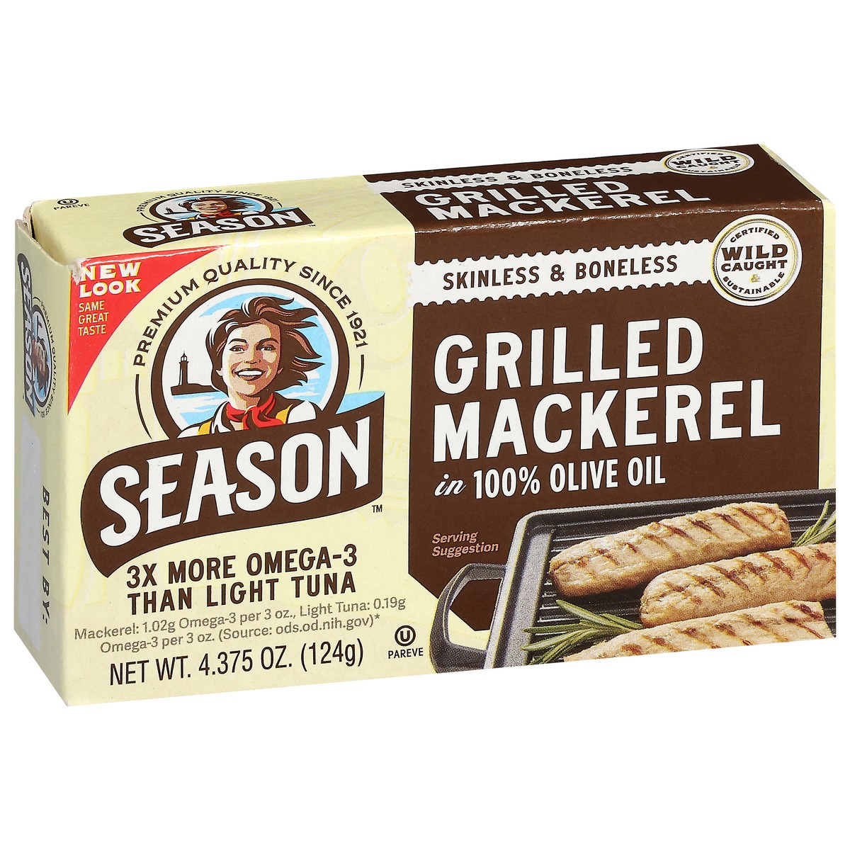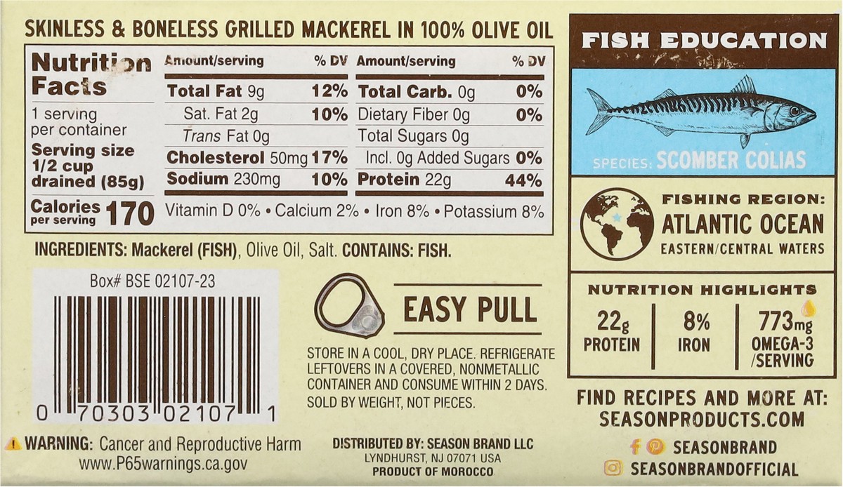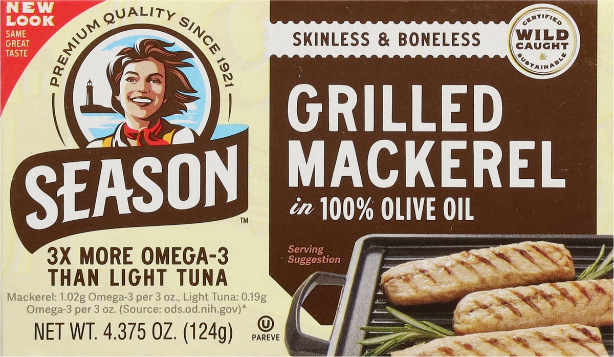 Season Wild Caught Skinless & Boneless Grilled Mackerel in 100% Olive Oil 4.375 oz