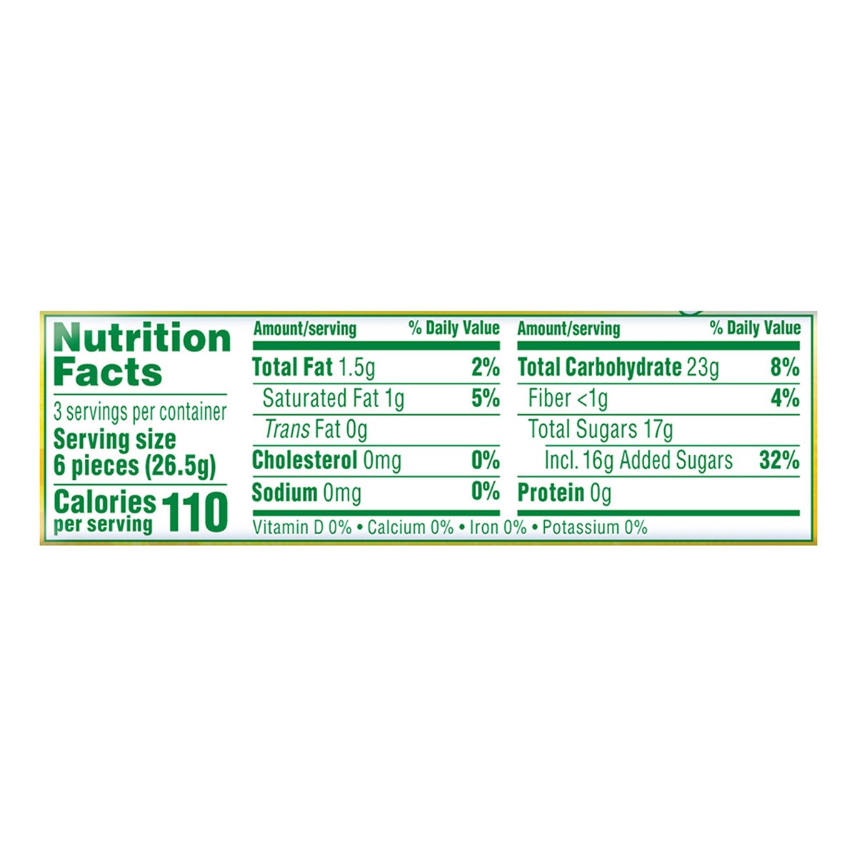 Sugar, Glucose Syrup (from Wheat or Corn), Palm Oil, Sorbitol (from Wheat or Corn), Gelatin, Citric Acid, Natural and Artificial Flavors, Black Carrot Juice Concentrate (Color), Turmeric Oleoresin (Co…