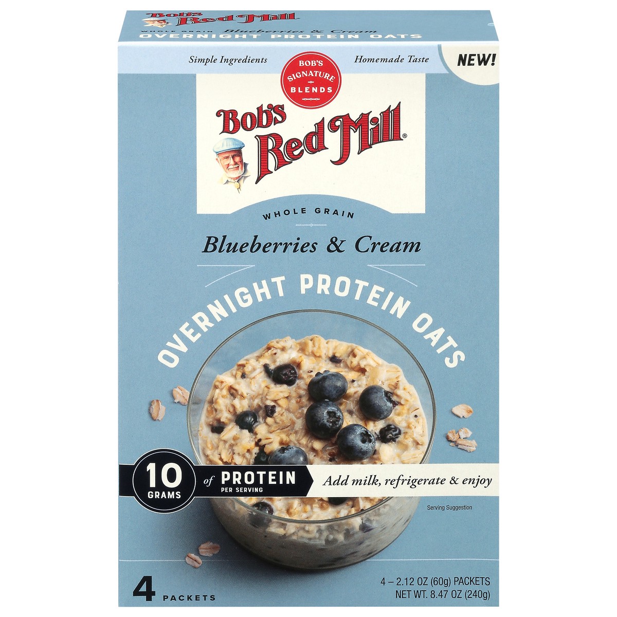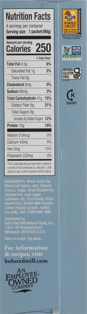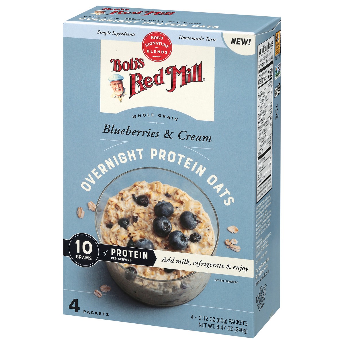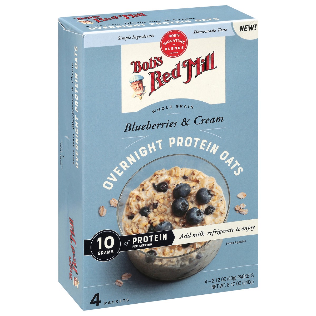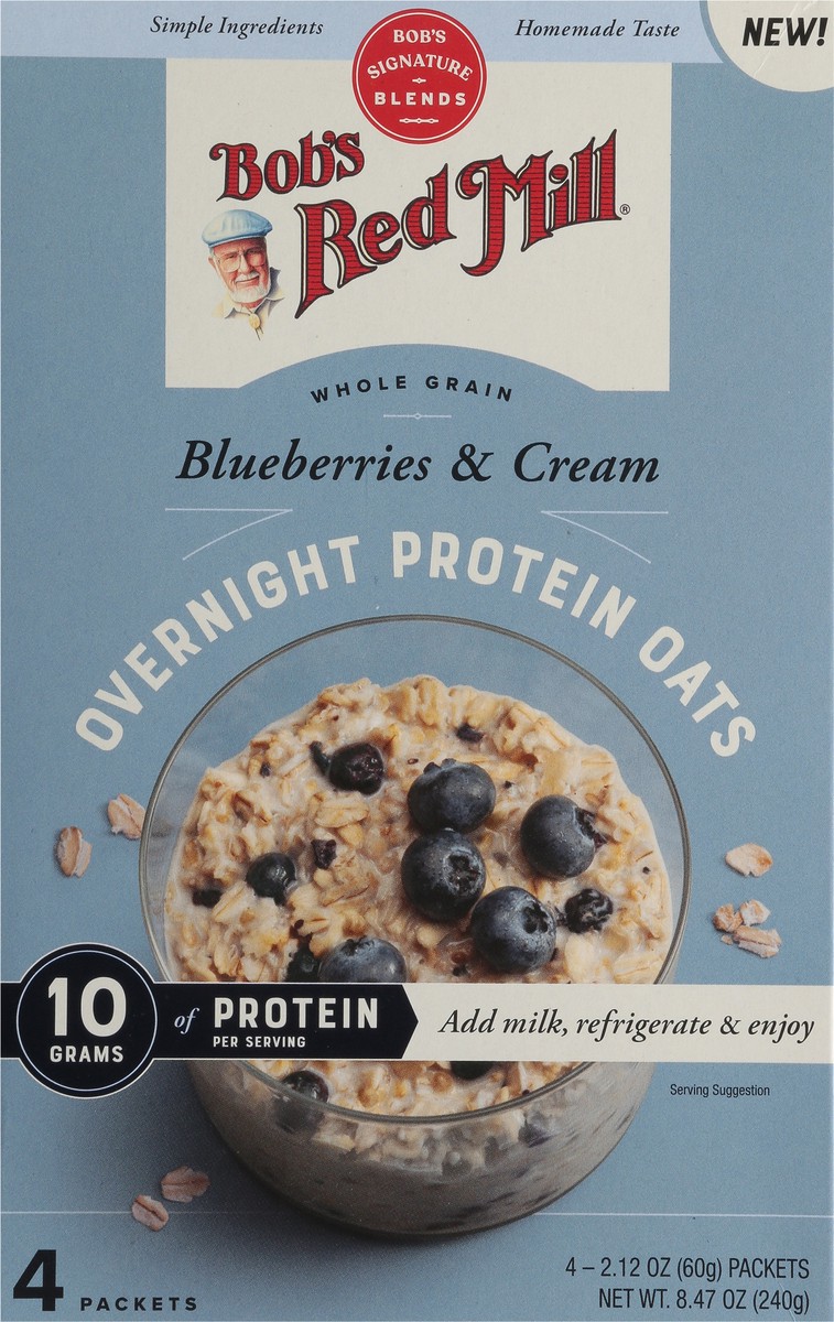 Bob's Red Mill Whole Grain Blueberries & Cream Overnight Protein Oats - 4 x 2.12 oz Packets