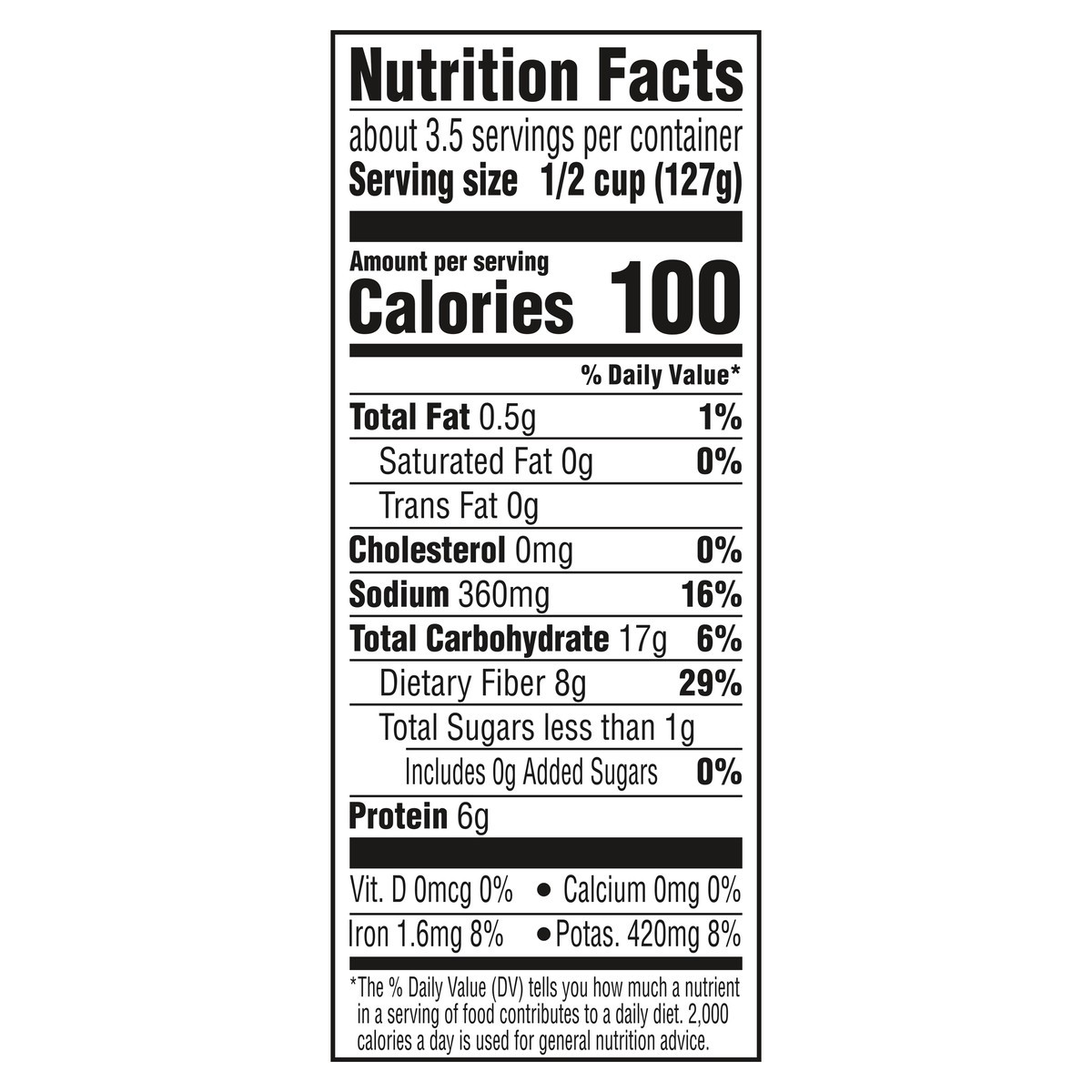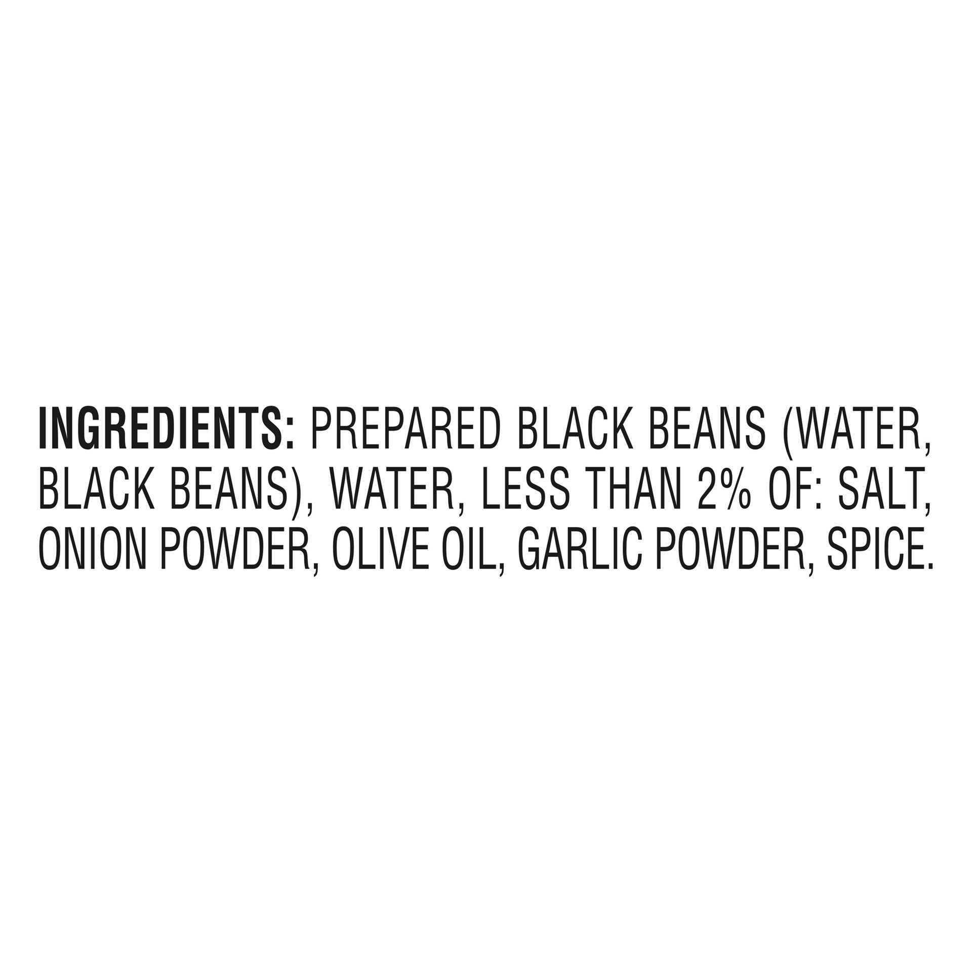 Prepared Black Beans (Water, Black Beans), Water, Less than 2% of: Salt, Onion Powder, Olive Oil, Garlic Powder, Spice. MAY CONTAIN: SOY.