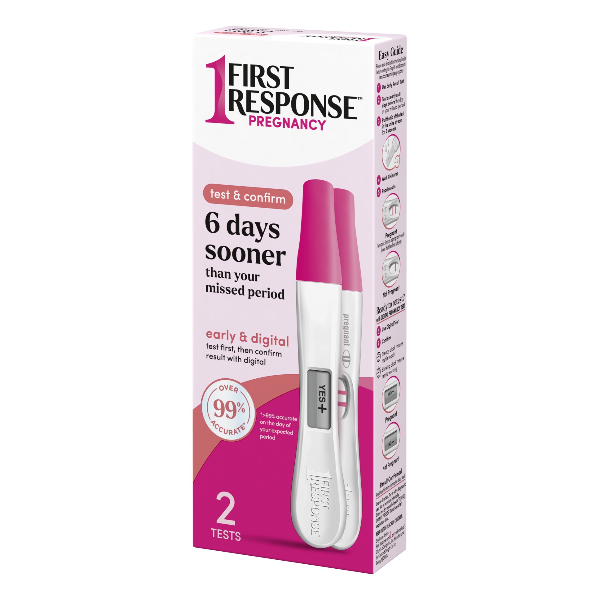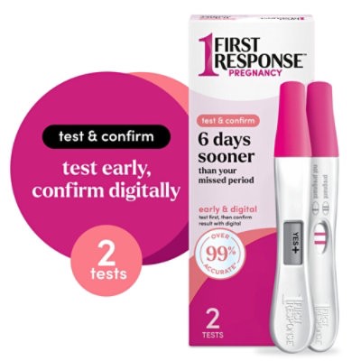 Test & Confirm your pregnancy test results 6 Days Sooner* with FIRST RESPONSE Test & Confirm Pregnancy Test, 1 Line Test and 1 Digital Test Pack! Sensitive enough to capture scant amounts of the pregn…