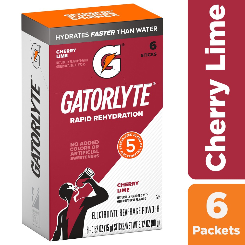 Gatorade Electrolyte Beverage Powder, Cherry Lime, Rapid Rehydration, 6 Pack