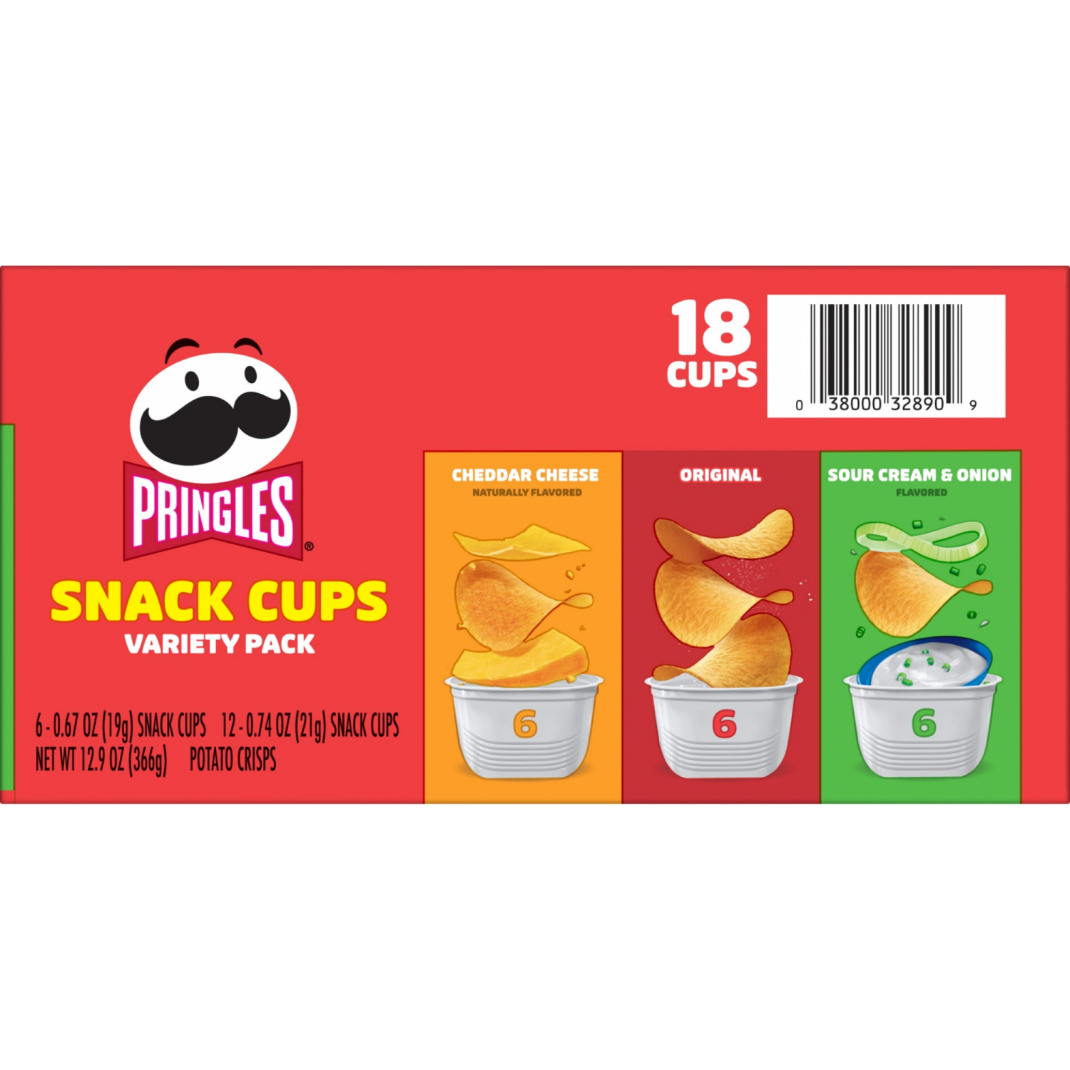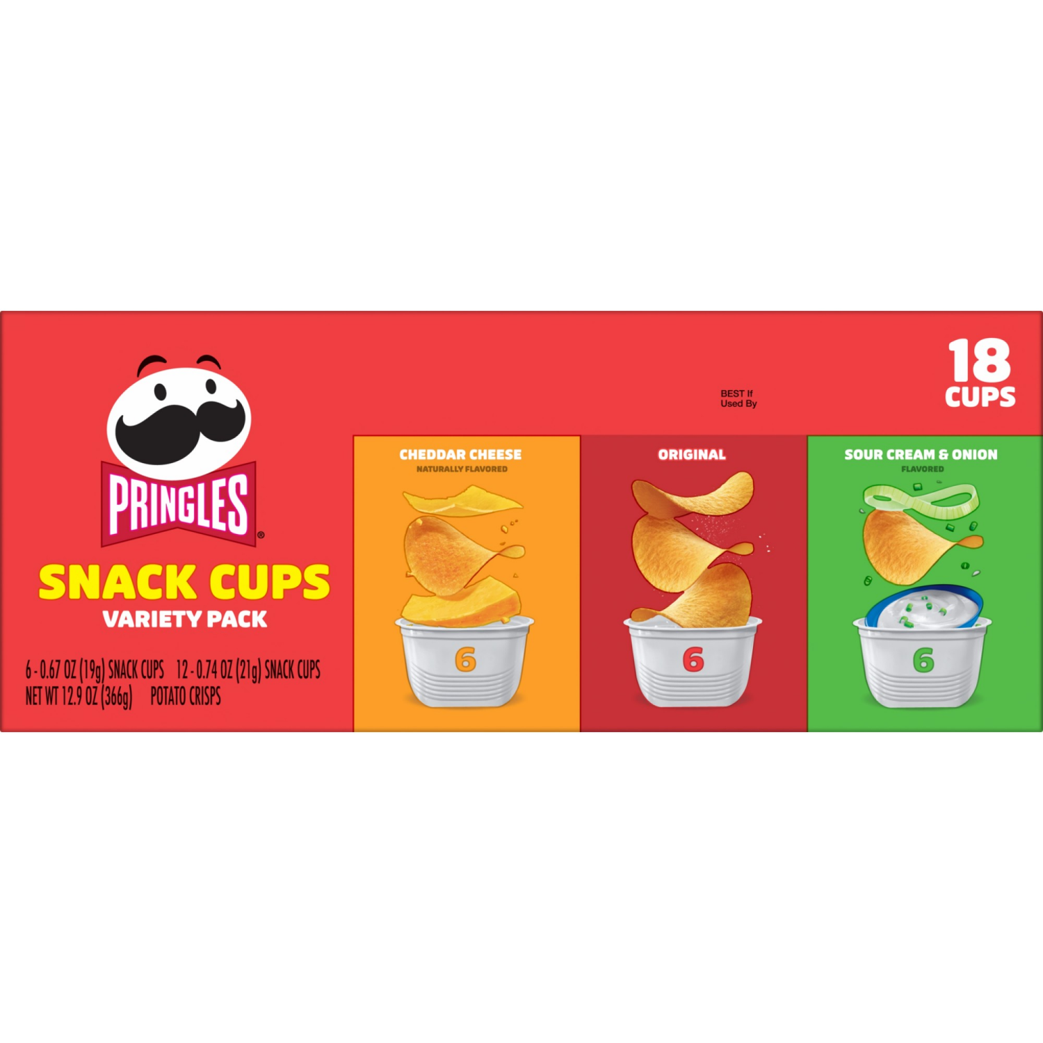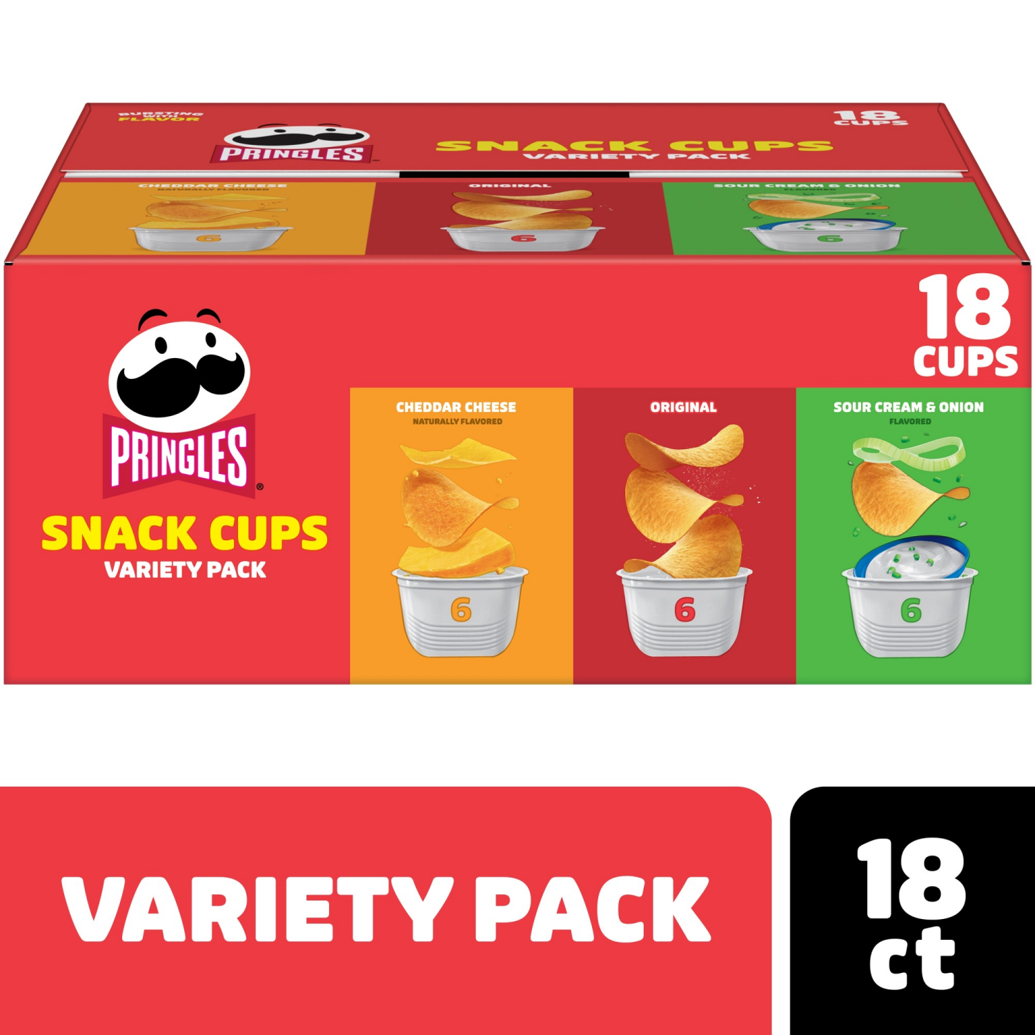 A burst of crisp, crunchy potato goodness seasoned to salty perfection. This variety pack includes three fan-favorite Pringles flavors - classic Original, zesty Sour Cream and Onion, and savory Chedda…