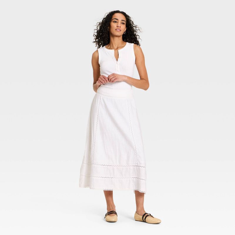 Women's Cutwork Midi Full Skirt - Universal Thread™ White 10
