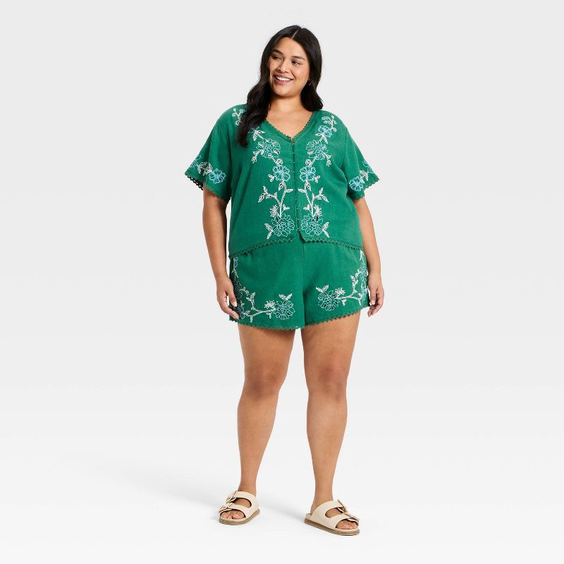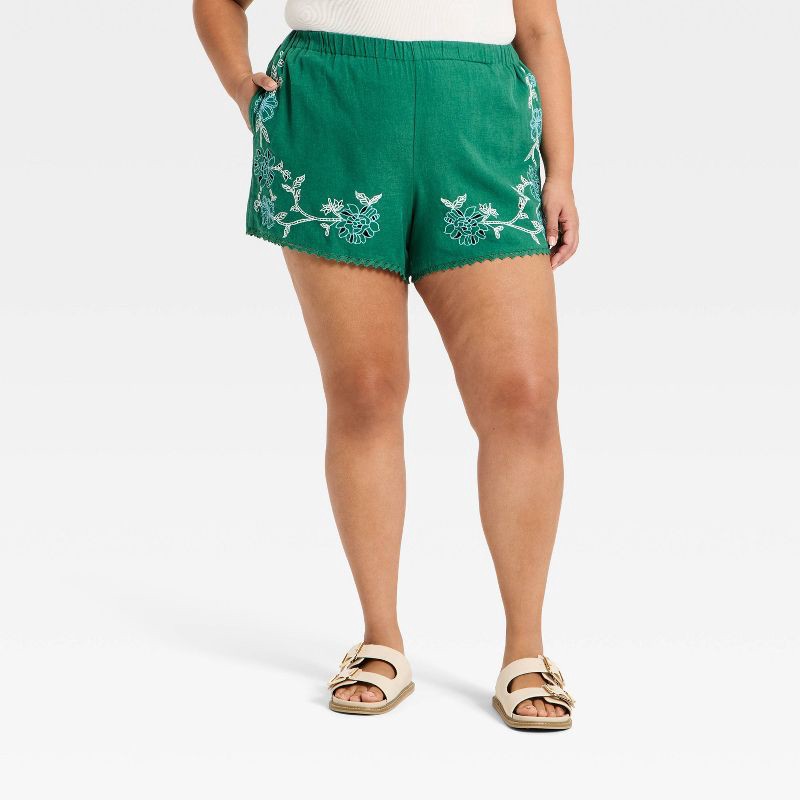 Women's Mid-Rise Cutwork Pull-On Shorts - Universal Thread™ Green XXL