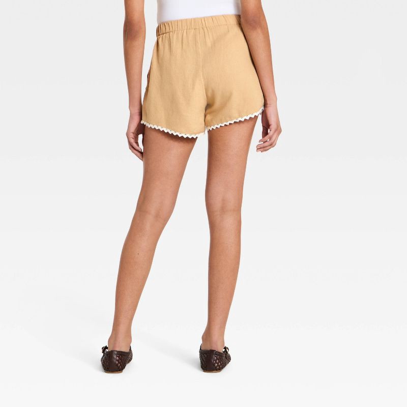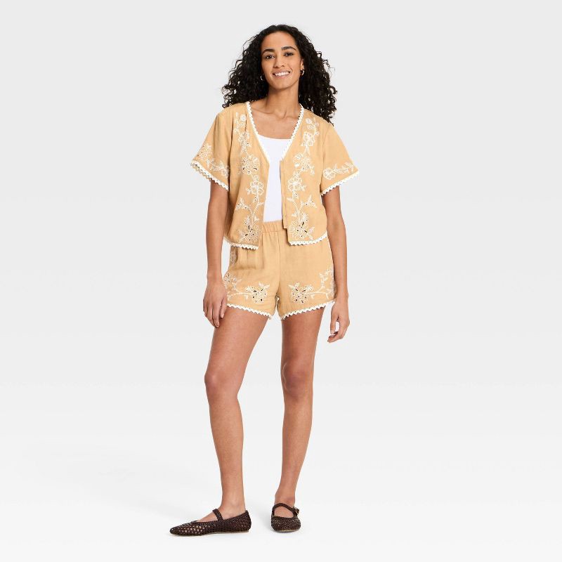 Add a vintage charm to your casual wardrobe with these Mid-Rise Cutwork Pull-On Shorts from Universal Thread™. Made of linen-rayon blend with no stretch, these mid-rise shorts offer a breezy feel. The…