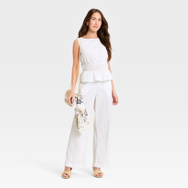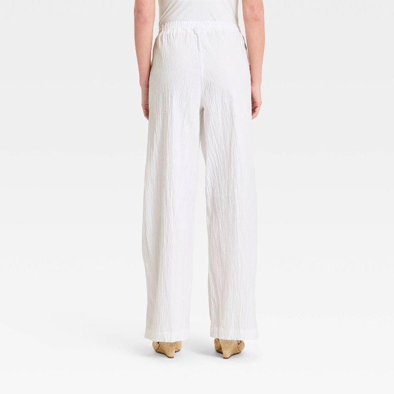Women's Seersucker Effortless Pull-On Pants - A New Day™ White XS
