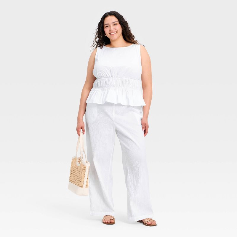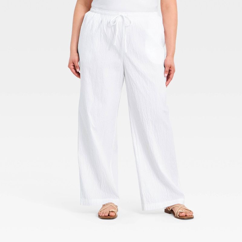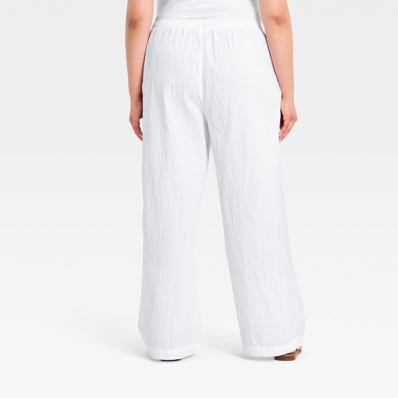 Women's Seersucker Effortless Pull-On Pants - A New Day™ White XXL